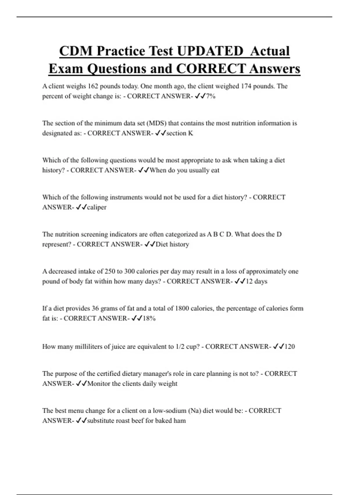 ANSWER- ✔✔Meet with the client to review their diet