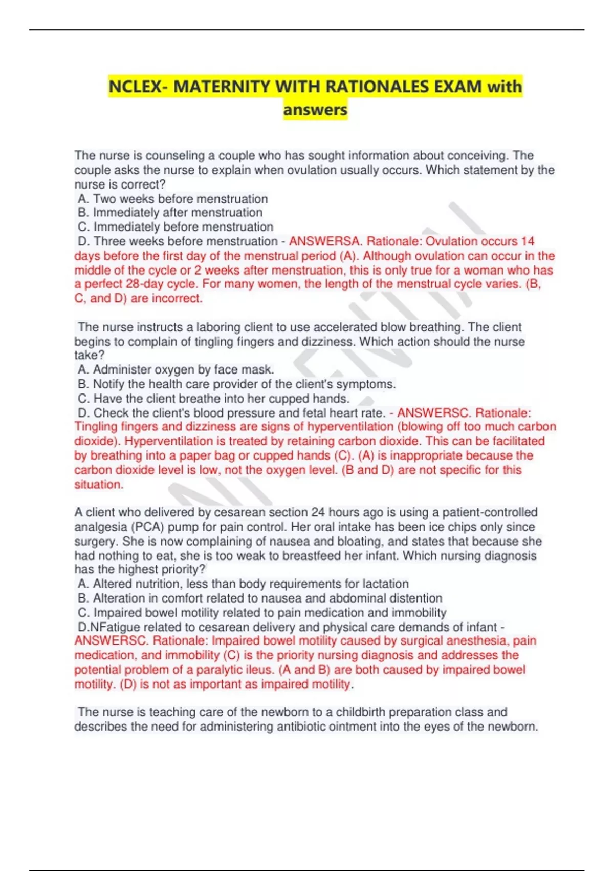 D. At 30 weeks of gestation - ANSWERSD. Rationale: Learning is facilitated by an