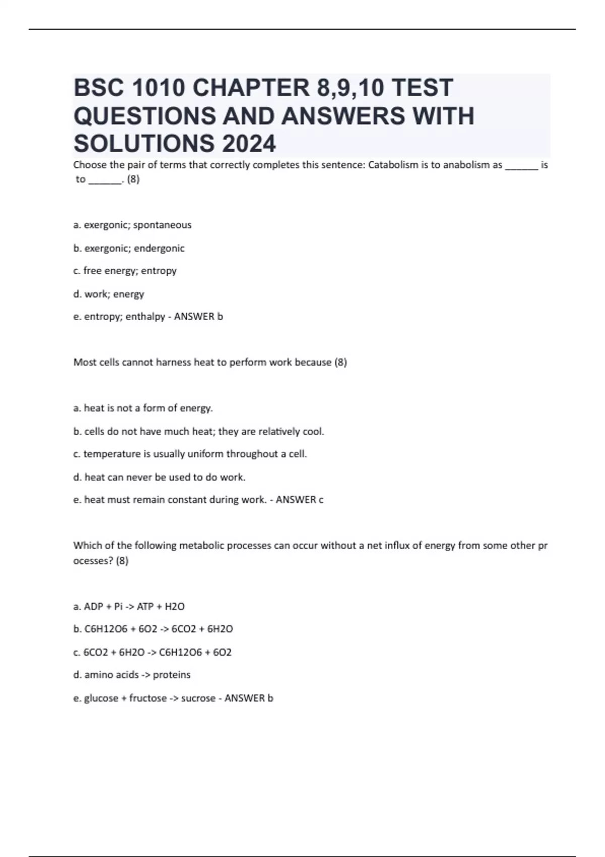BSC 1010 CHAPTER 8,9,10 TEST QUESTIONS AND ANSWERS WITH SOLUTIONS 2024