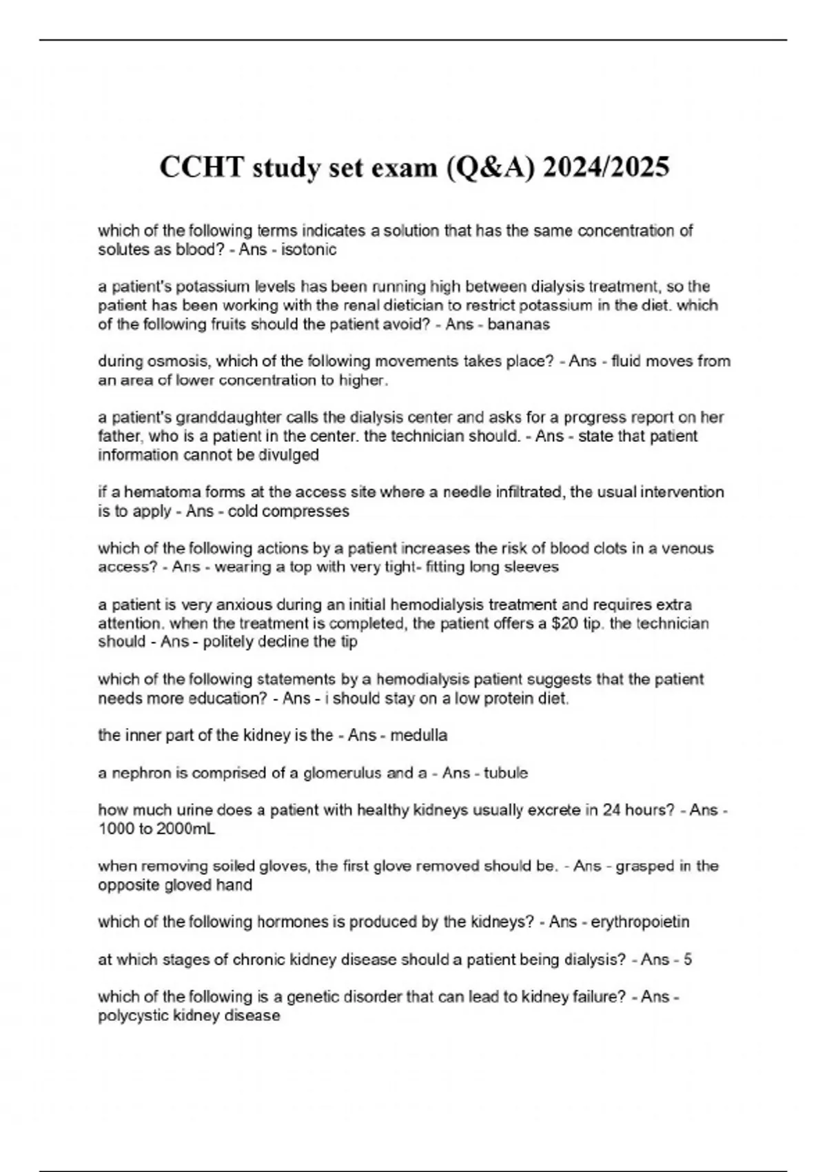 CCHT study set exam (Q&A) 2024/202
