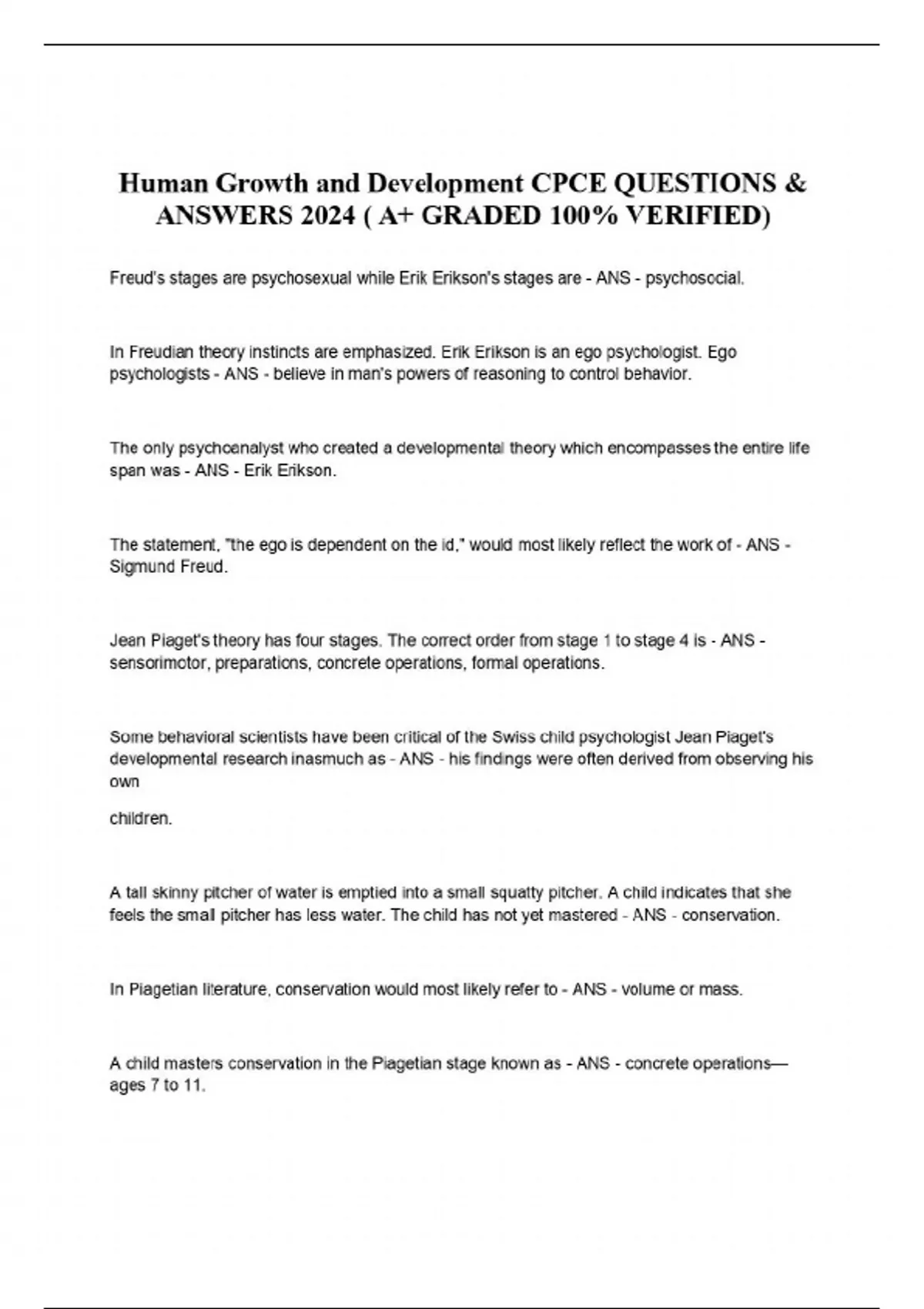 Human Growth and Development CPCE QUESTIONS & ANSWERS 2024 ( A+ GRADED 100% VERIFIED)