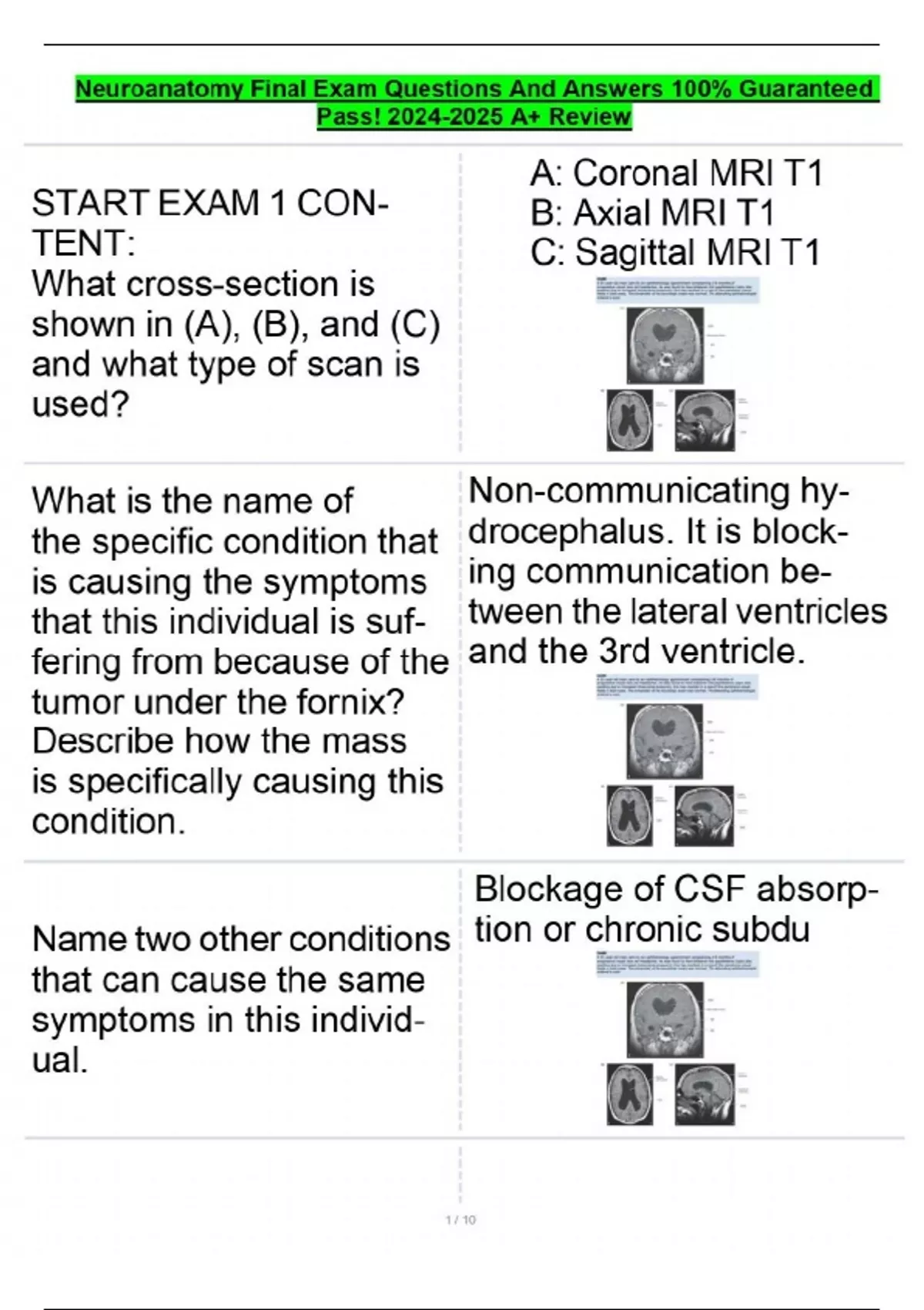 Neuroanatomy Final Exam Questions And Answers 100% Guaranteed Pass! A+ Review START EXAM 1 CON- TENT: What cross-section is shown in (A), (B), and (C) and what type of scan is used?...