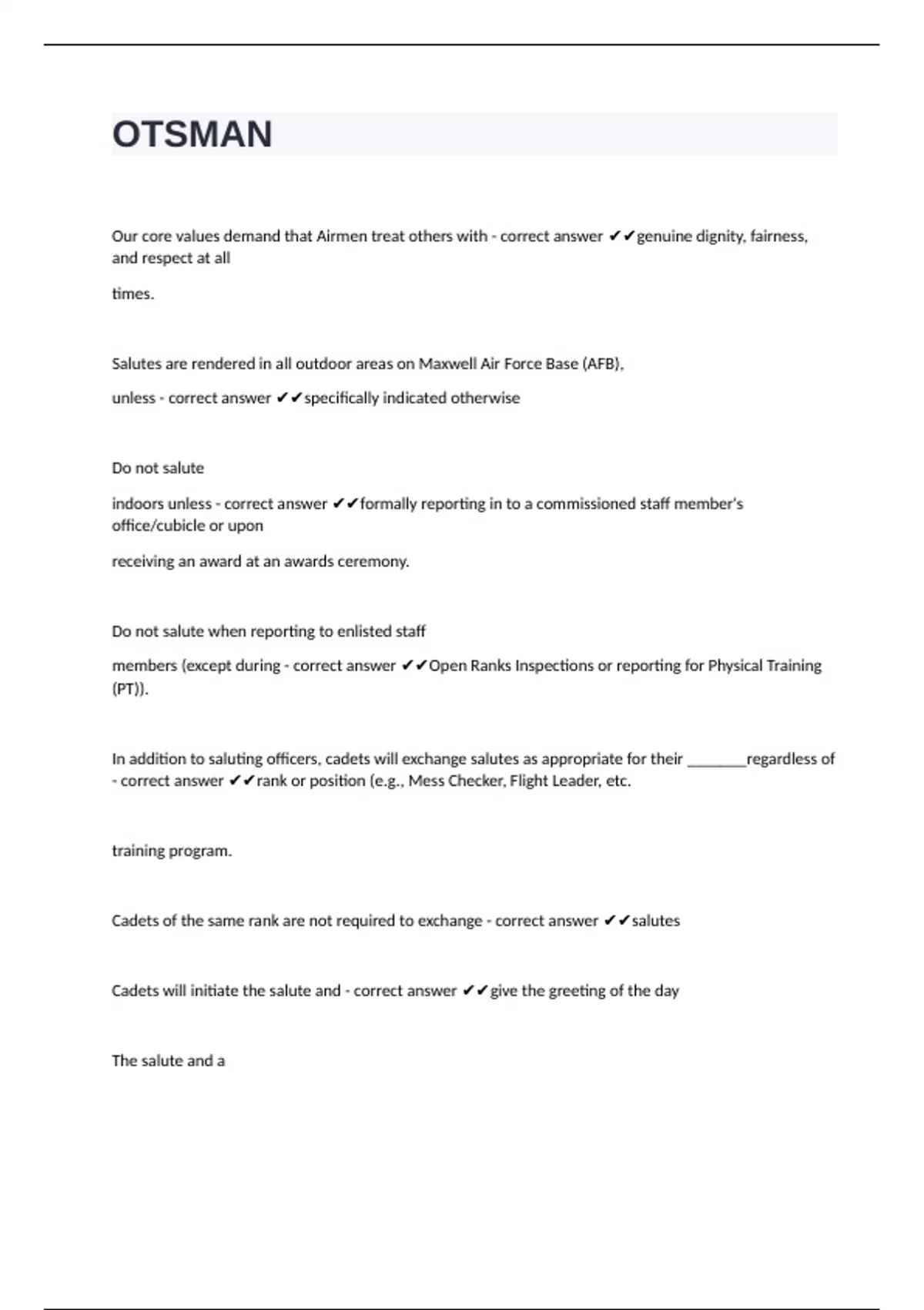 - correct answer ✔✔rank or position (e.g., Mess Checker, Flight Leader, etc.