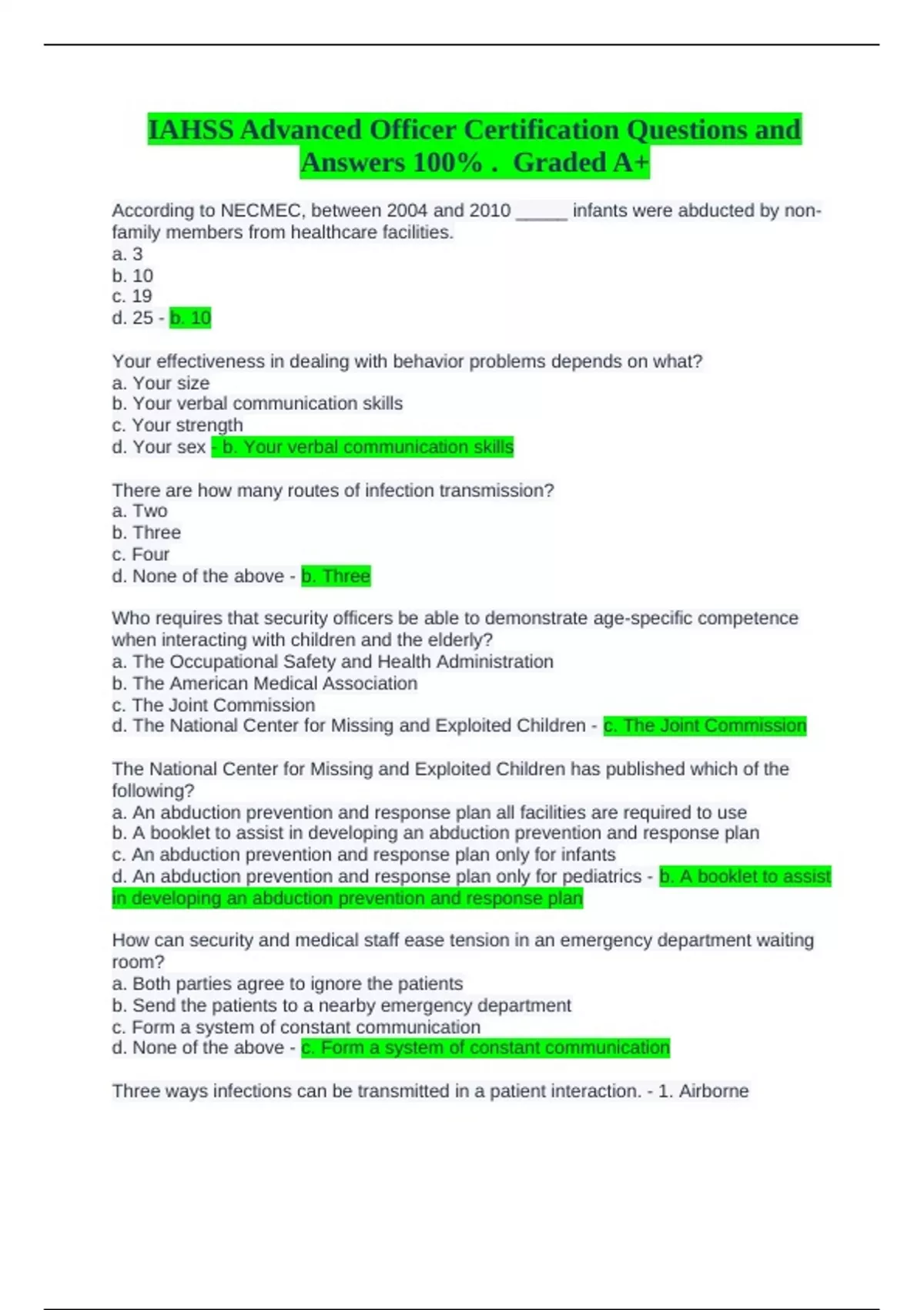 IAHSS Advanced Officer Certification Questions and Answers 100% . Graded A+