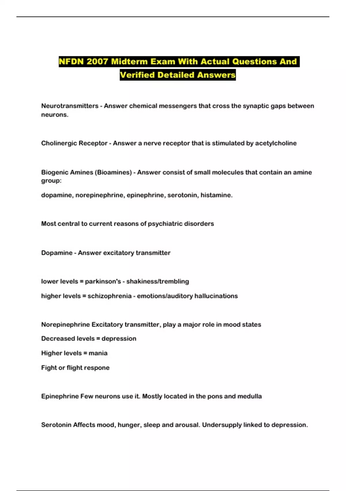 Norepinephrine Excitatory transmitter, play a major role in mood states