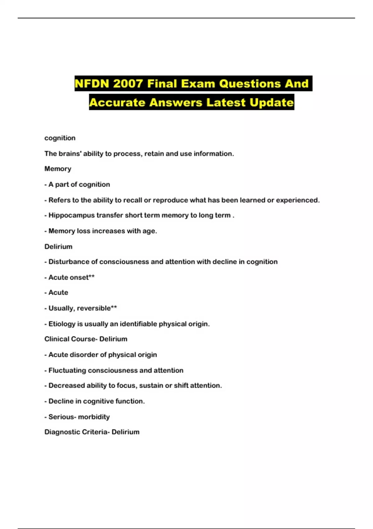 NFDN 2007 Final Exam Questions And Accurate Answers Latest Update