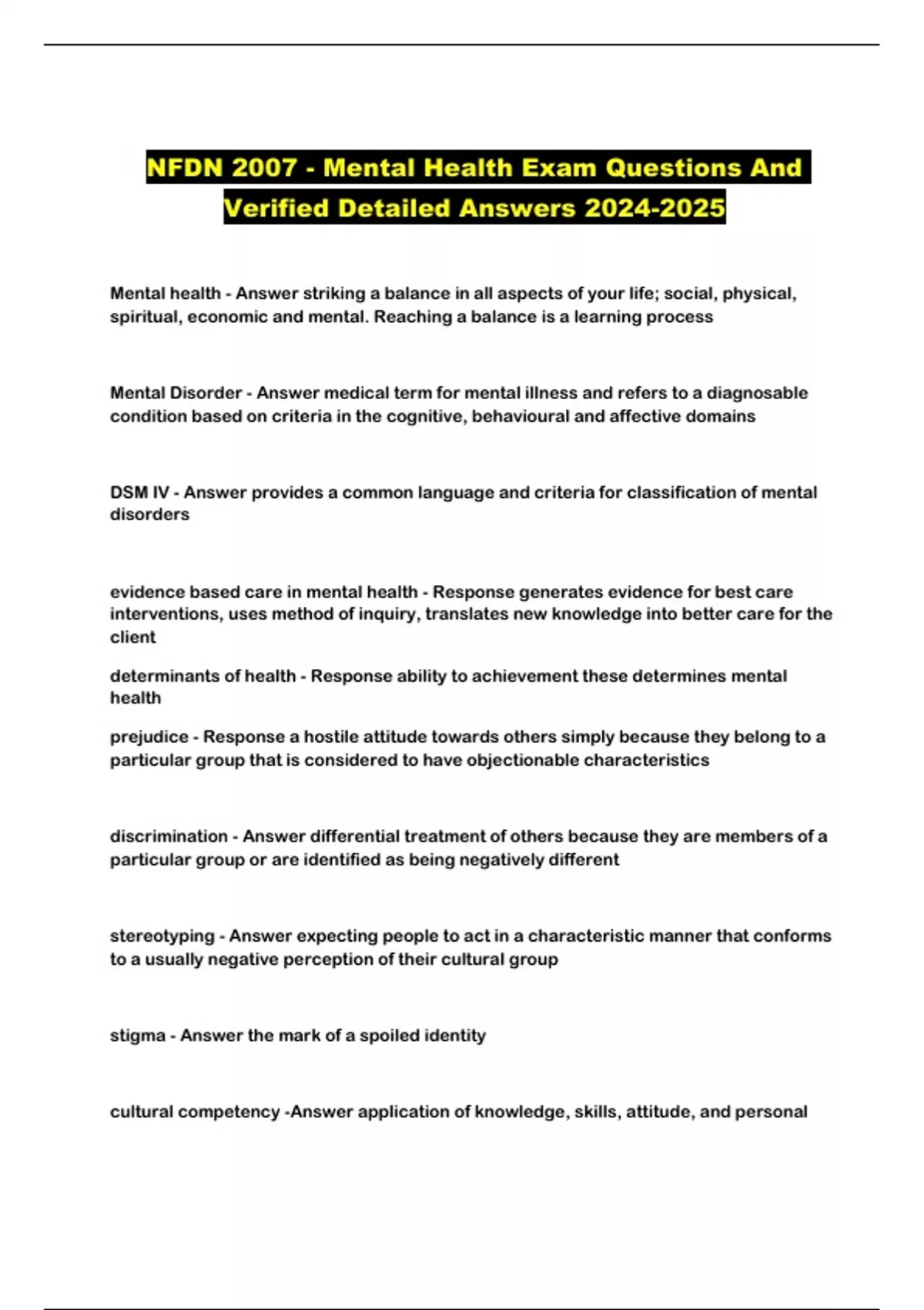 NFDN 2007 - Mental Health Exam Questions And Verified Detailed Answers