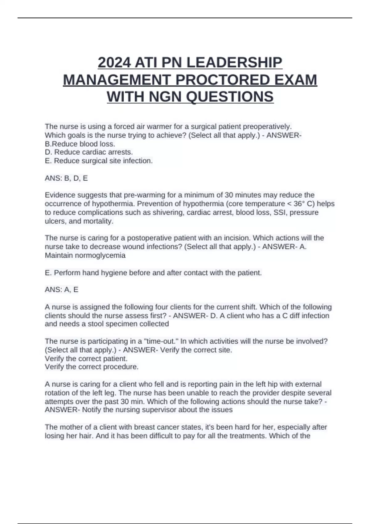 2024 ATI PN LEADERSHIP MANAGEMENT PROCTORED EXAM WITH NGN QUESTIONS