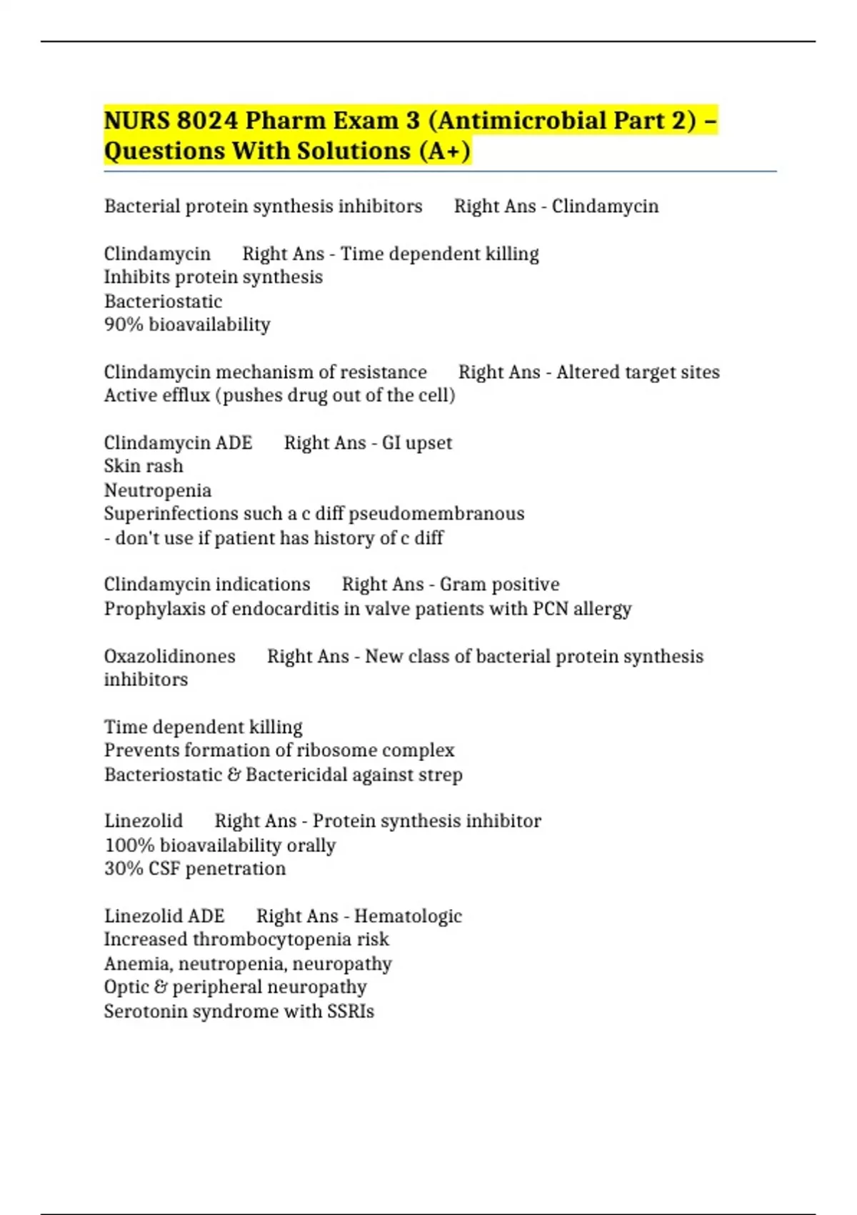 Bacterial protein synthesis inhibitors Right Ans - Clindamycin