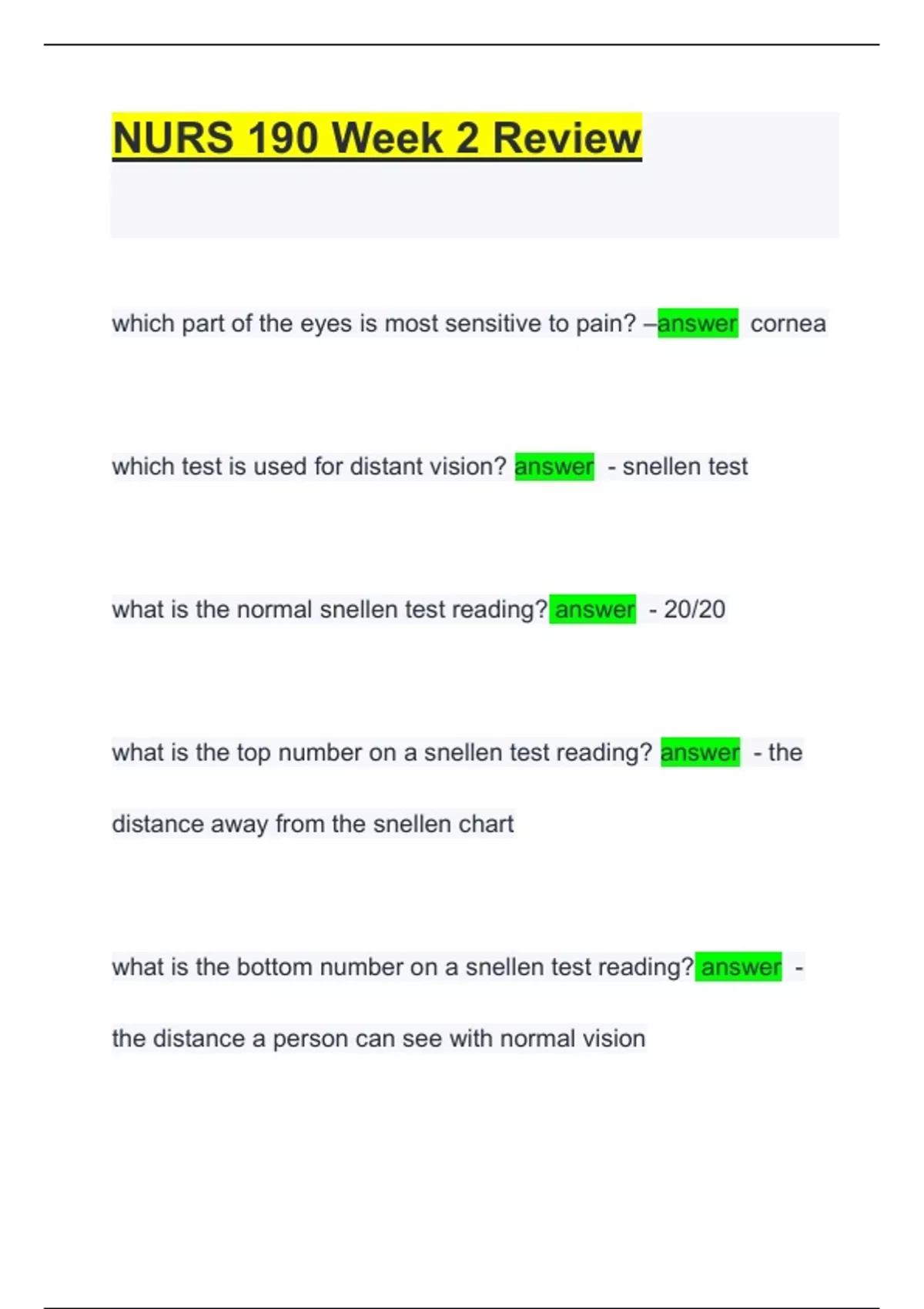 Exam of 13 pages for the course NURS 190 at Chamberlain College Of Nursing (NURS 190 Week 2 R)