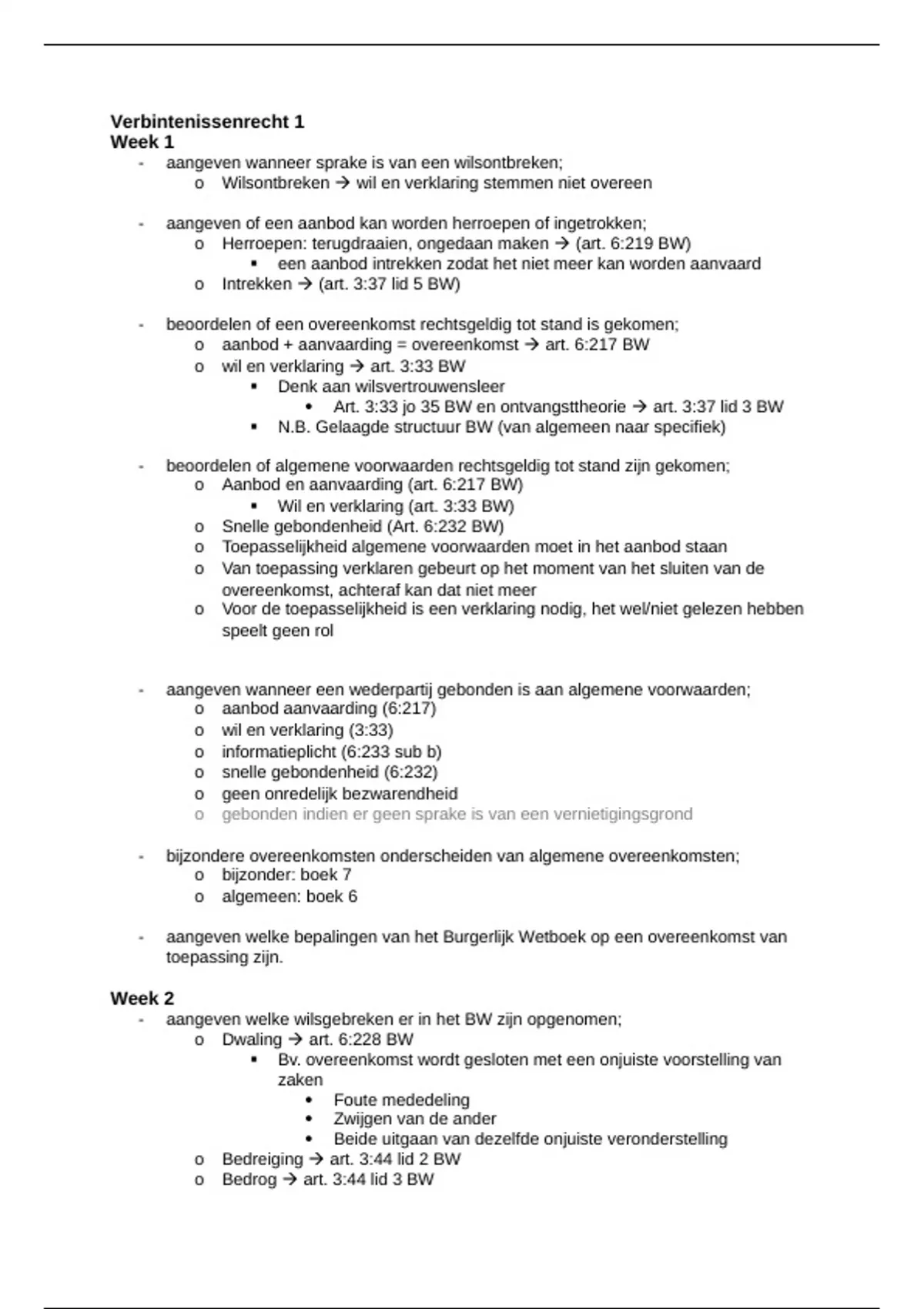 Samenvatting Verbintenissenrecht 1 K1 JHS (cijfer: 7,6)