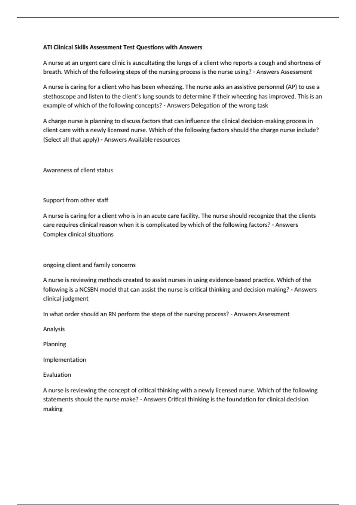 statements should the nurse make? - Answers Critical thinking is the foundation for clinical decision