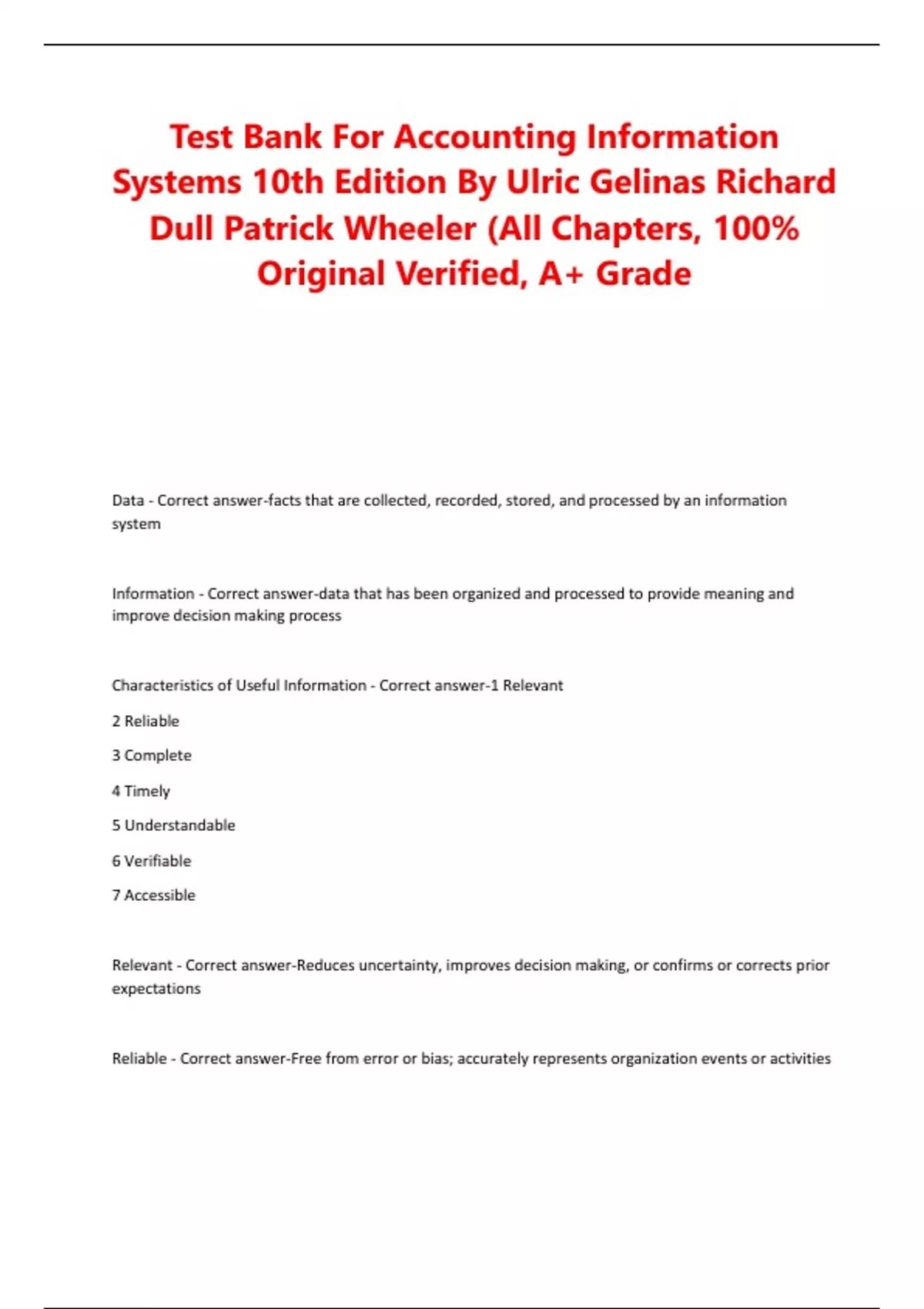 Characteristics of Useful Information - Correct answer-1 Relevant