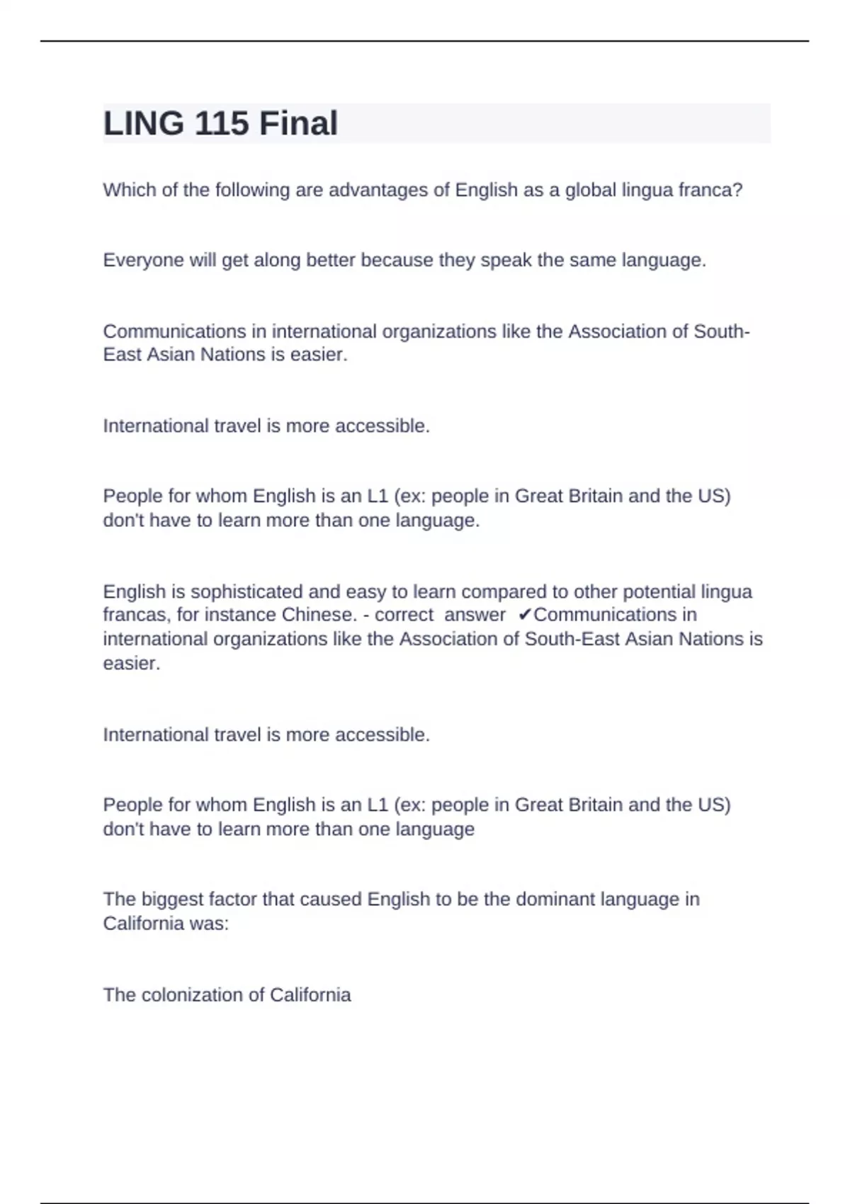 LING 115 Final c questions with complete solutions 2024
