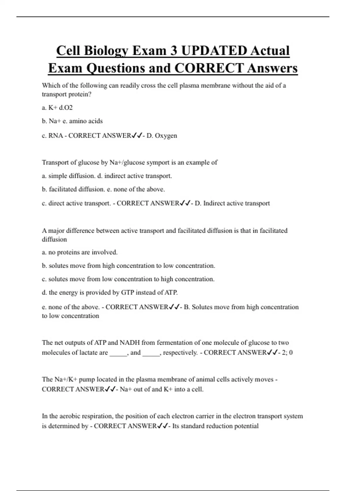 c. direct active transport. - CORRECT ANSWER✔✔- D. Indirect active transport
