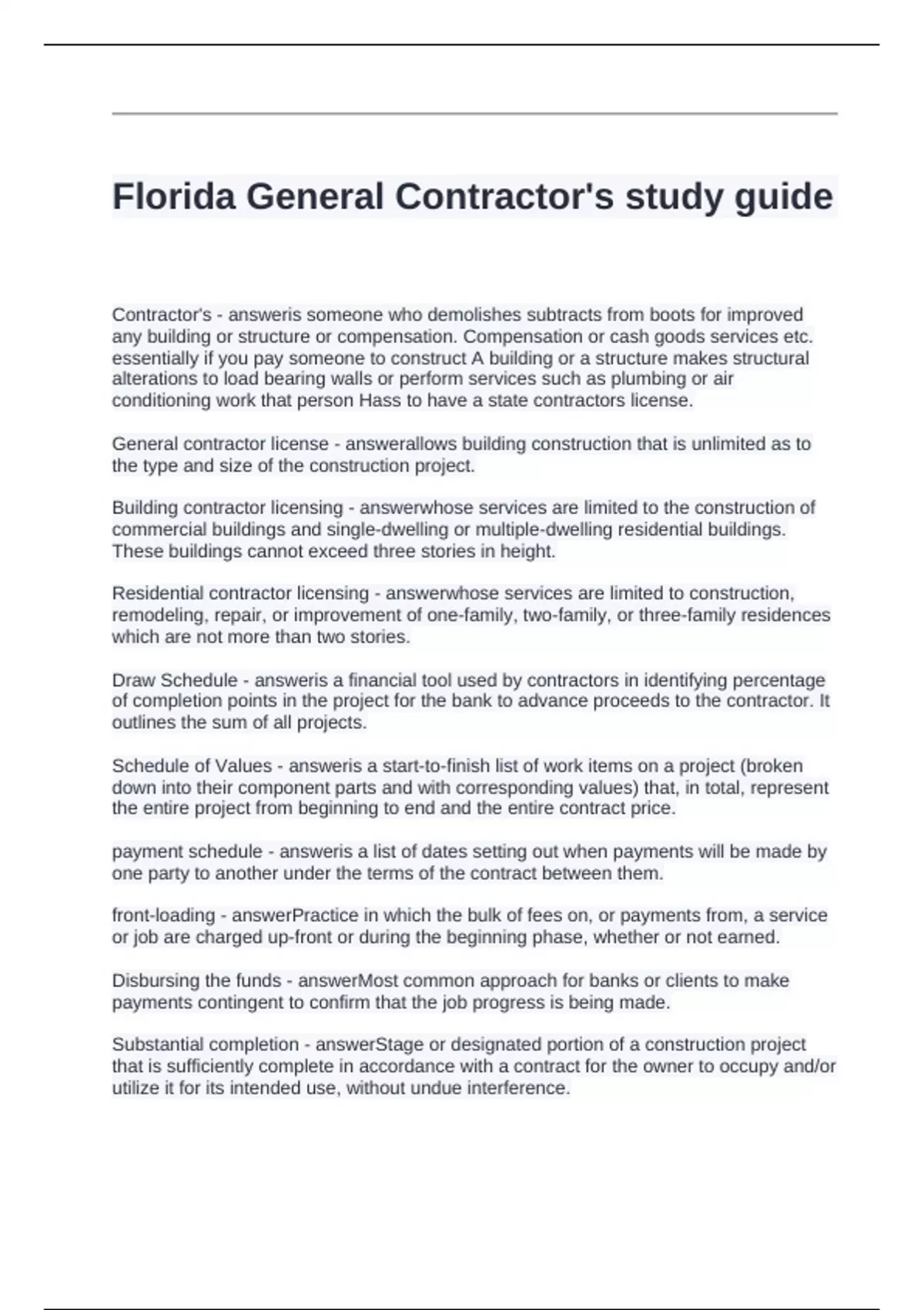 Florida General Contractor's study guide