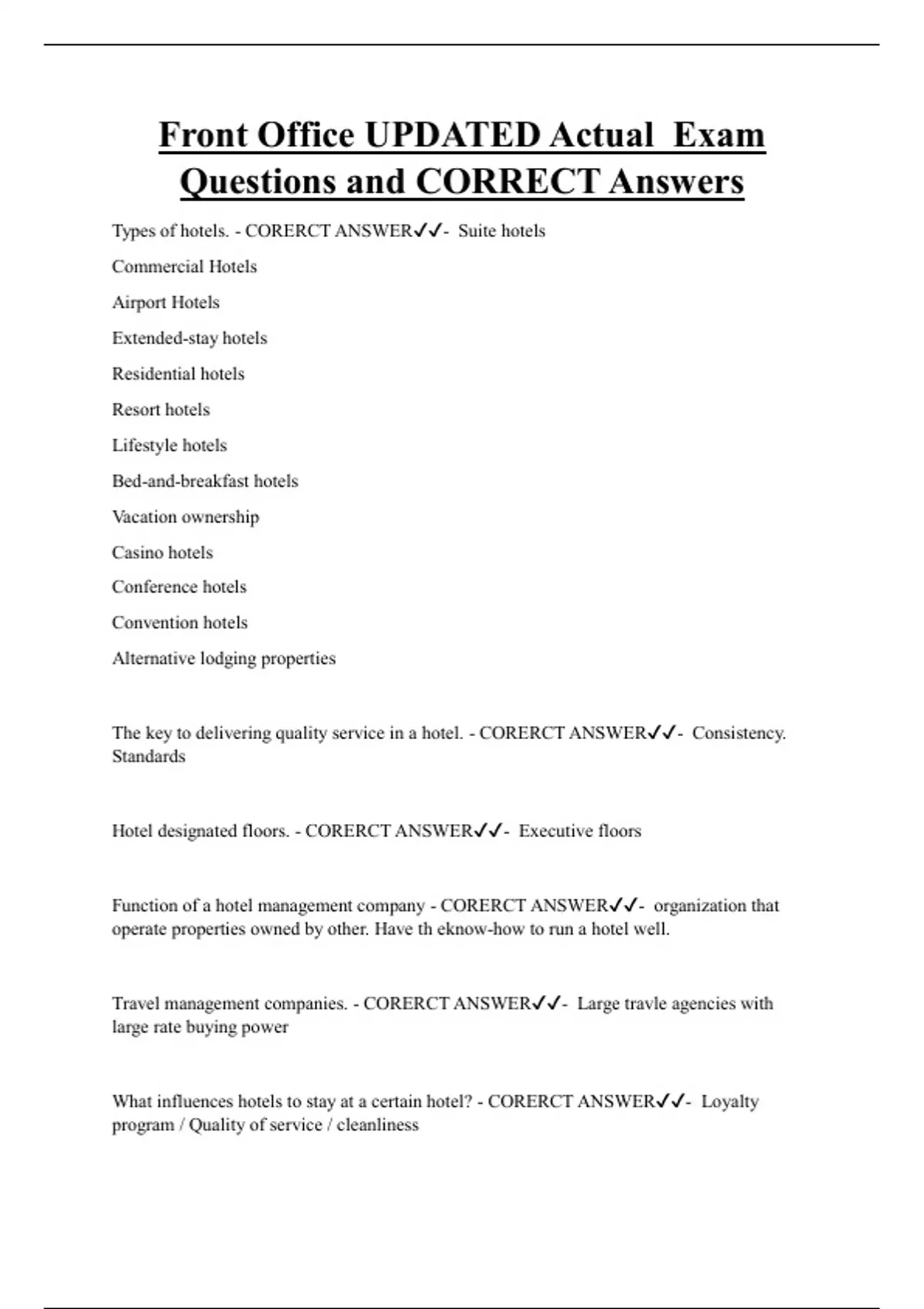 Function of a hotel management company - CORERCT ANSWER✔✔- organization that