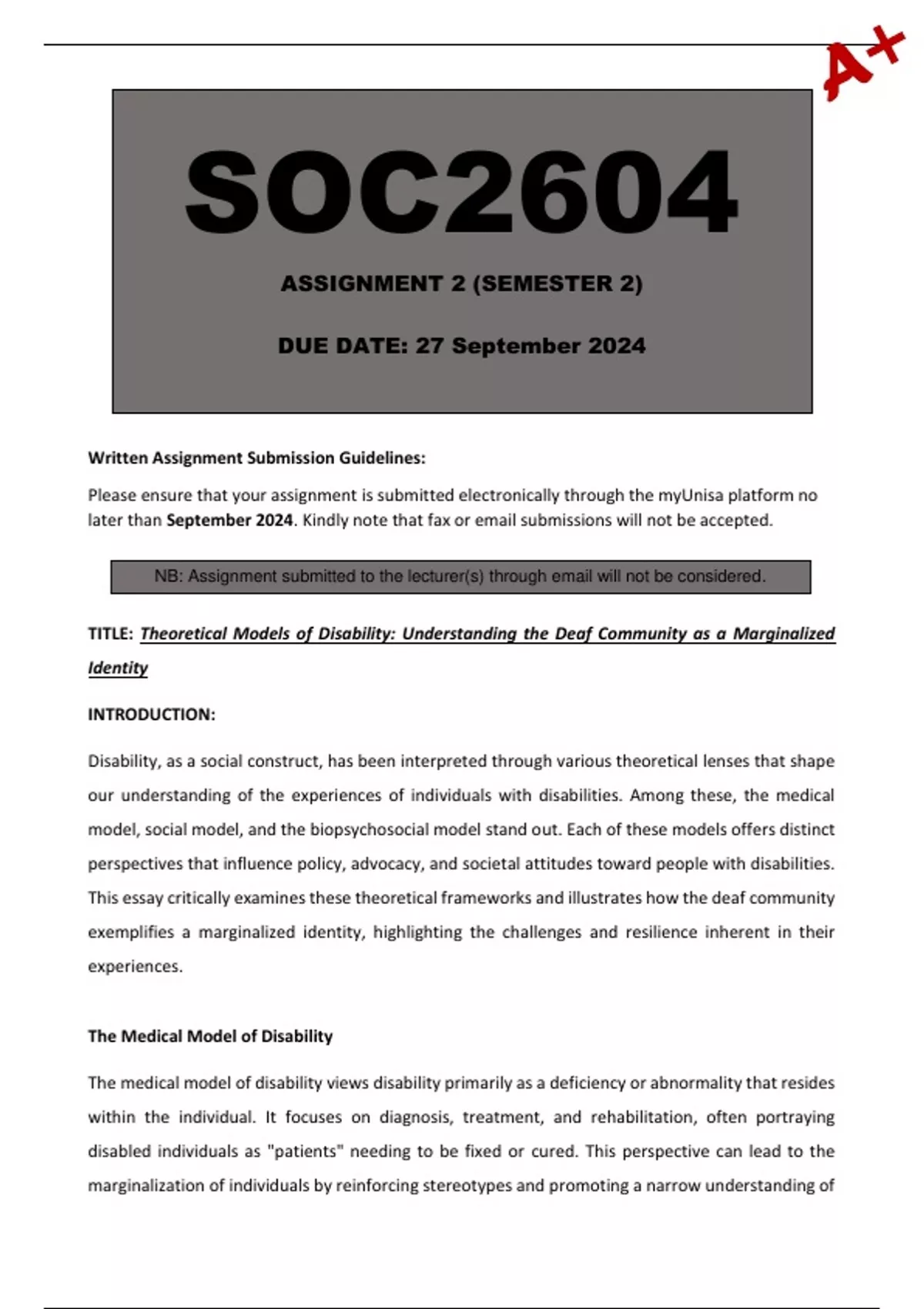 SOC2604 Assignment 2 (COMPLETE ANSWERS) Semester 2 2024 - DUE 27 September 2024