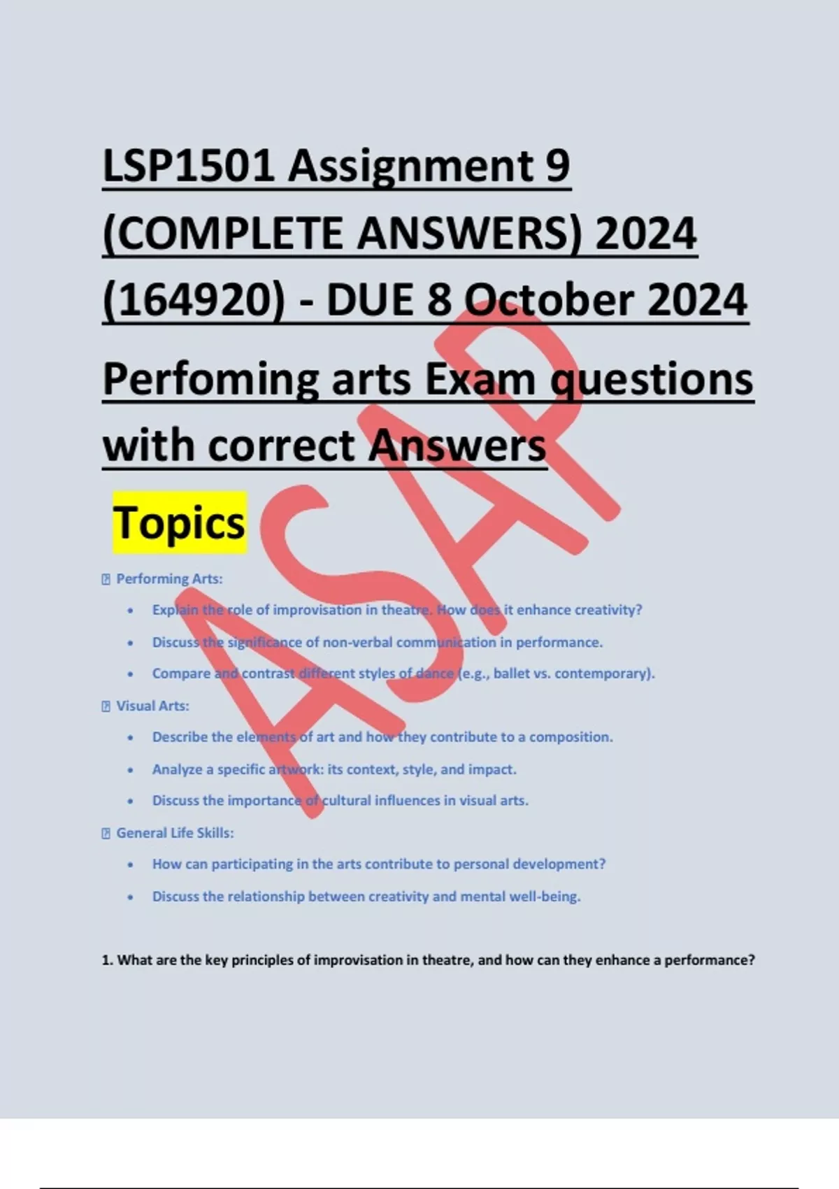 Perfoming arts Exam questions