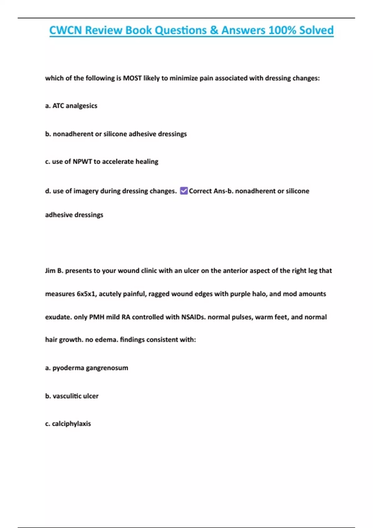 d. use of imagery during dressing changes. Correct Ans-b. nonadherent or silicone