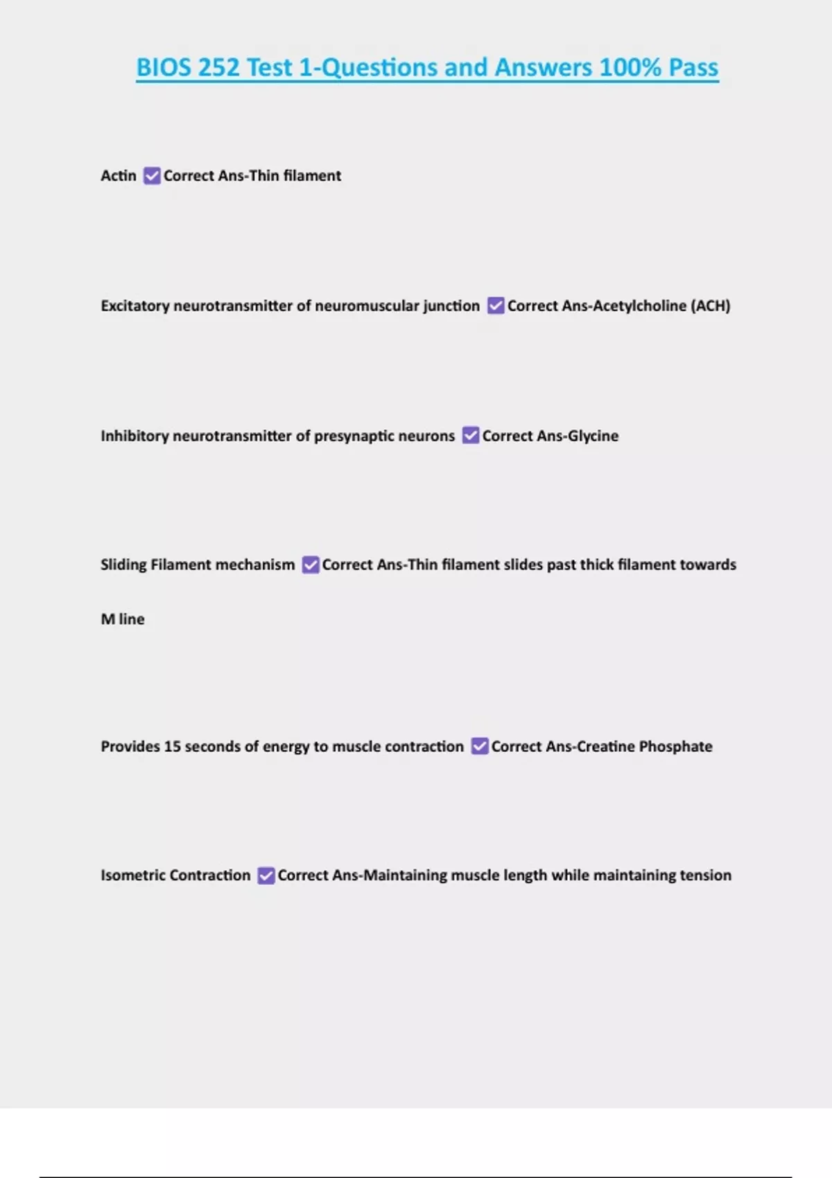 BIOS 252 Test 1-Questions and Answers 100% Pass