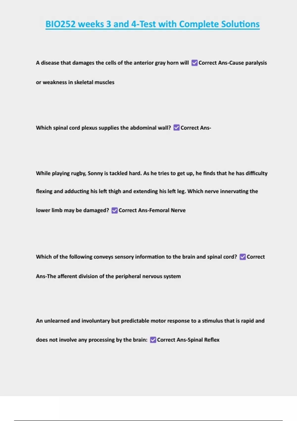 , BIO252 weeks 3 and 4-Test with Complete Solutions