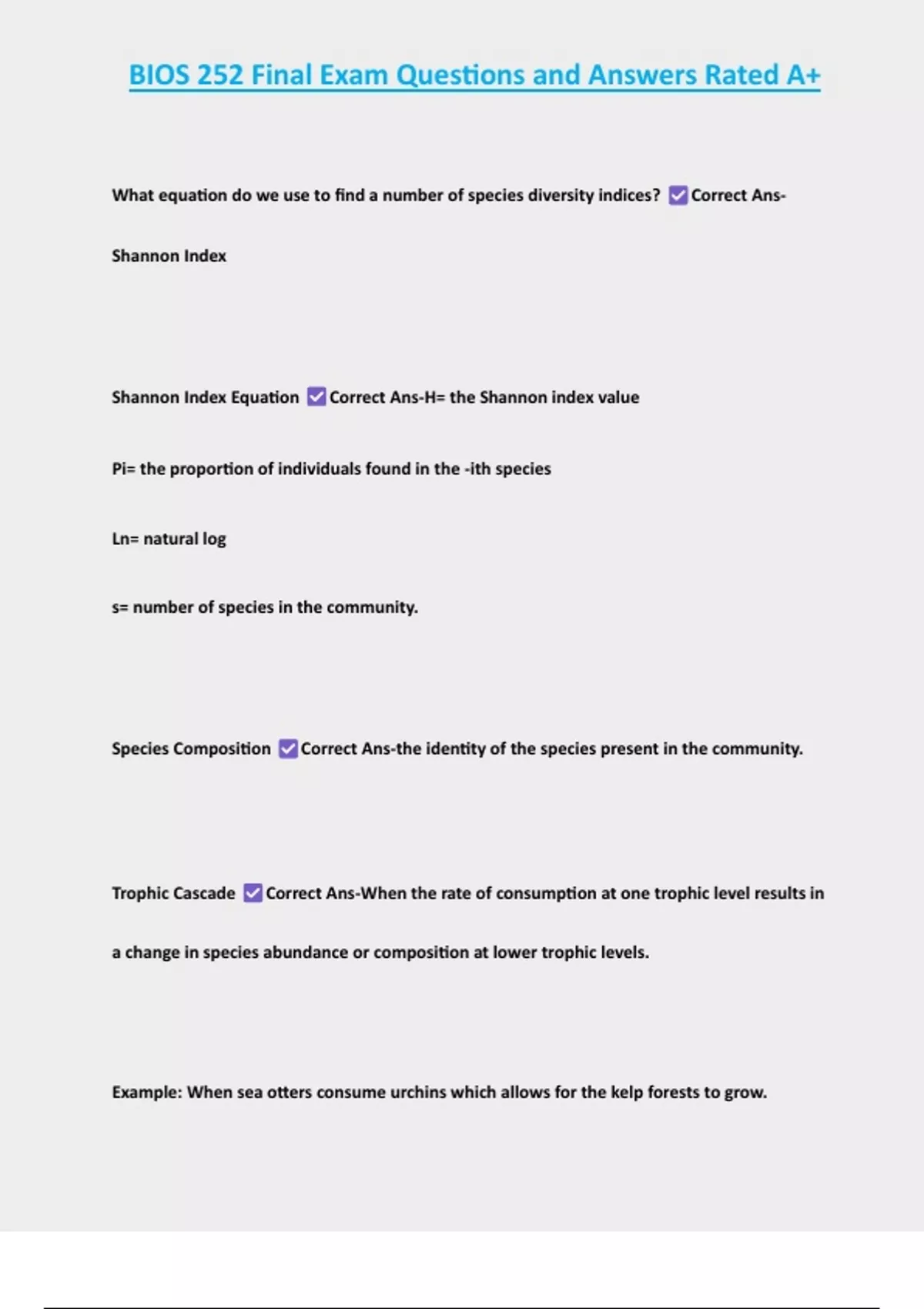 , BIOS 252 Final Exam Questions and Answers Rated A+