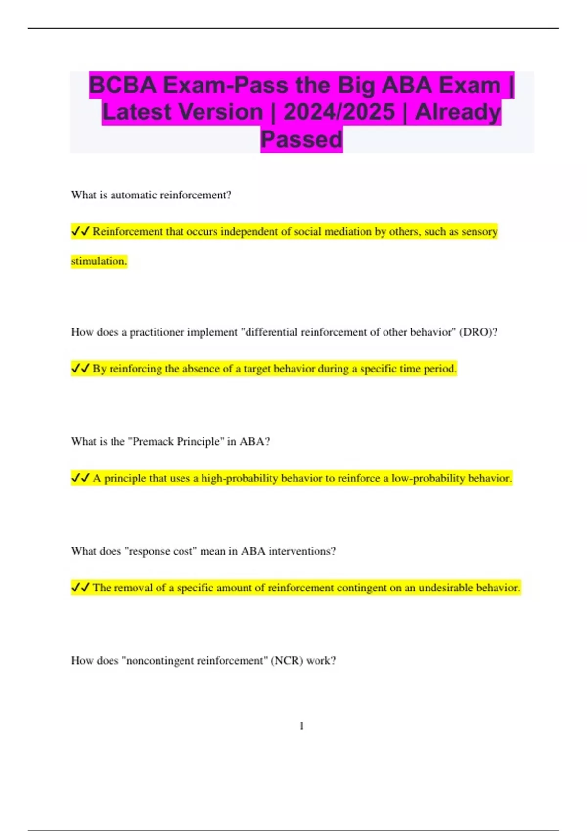 BCBA Exam-Pass the Big ABA Exam | Latest Version | 2024/2025 | Already Passed