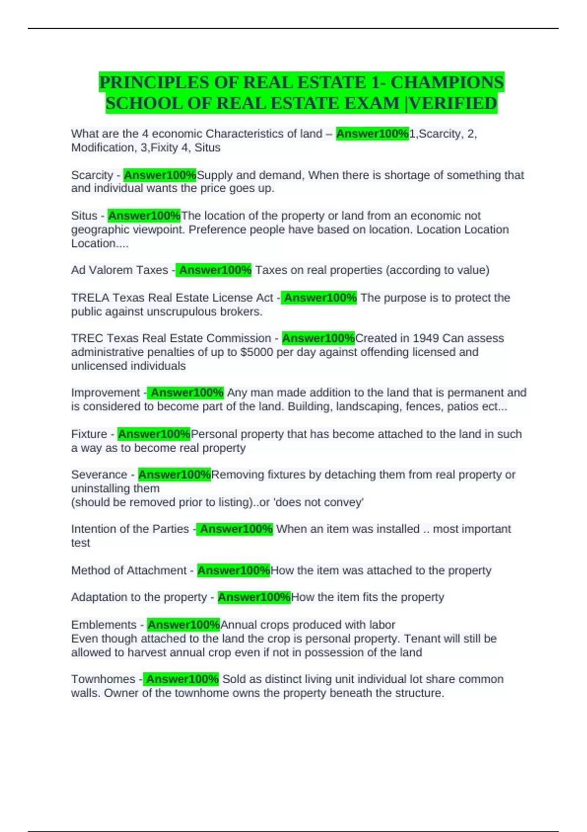 SCHOOL OF REAL ESTATE EXAM |VERIFIED