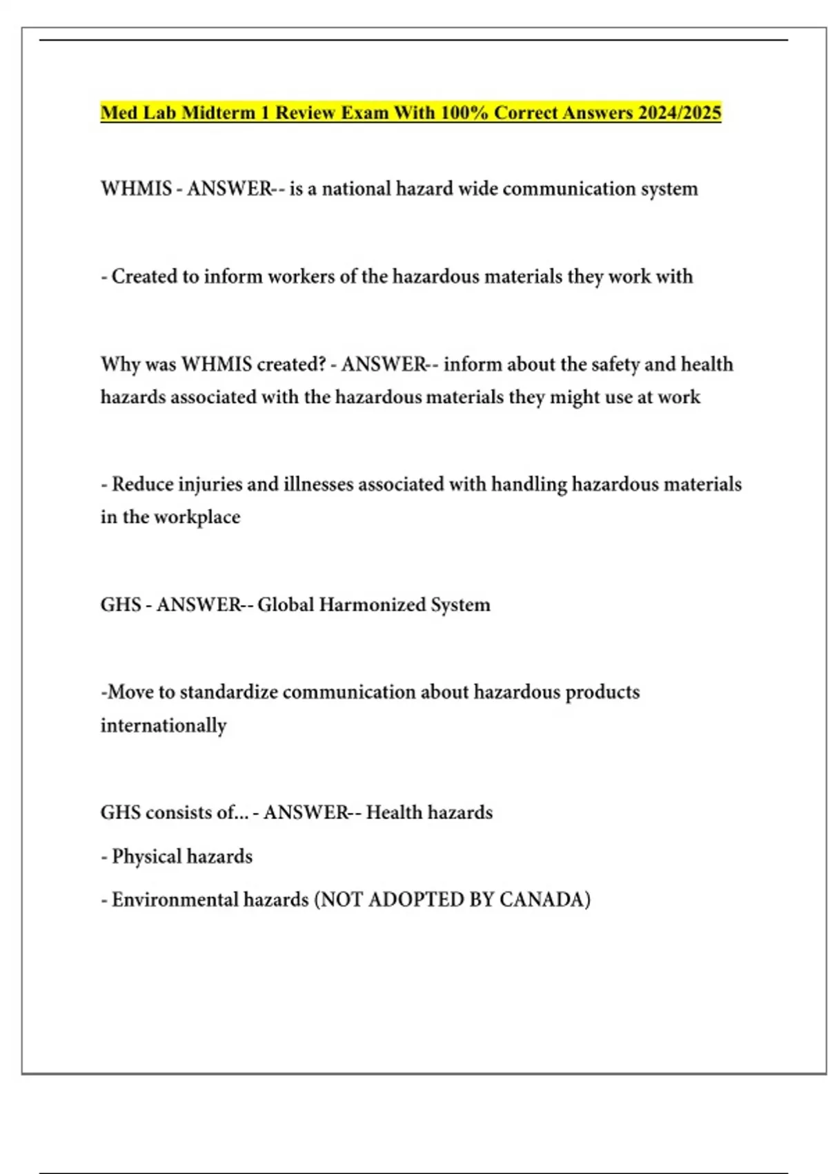 Med Lab Midterm 1 Review Exam With 100% Correct Answers 2024/2025