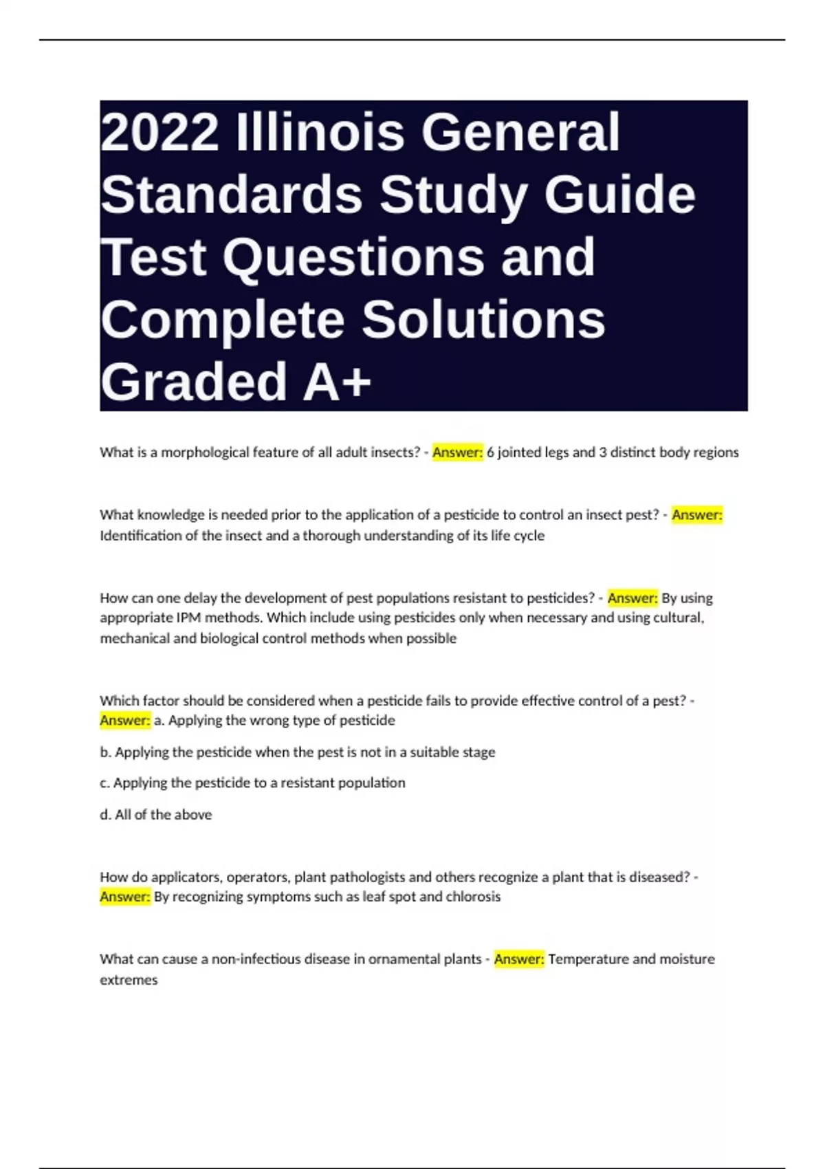 2022 Illinois General Standards Study Guide Test Questions and Complete Solutions Graded A+
