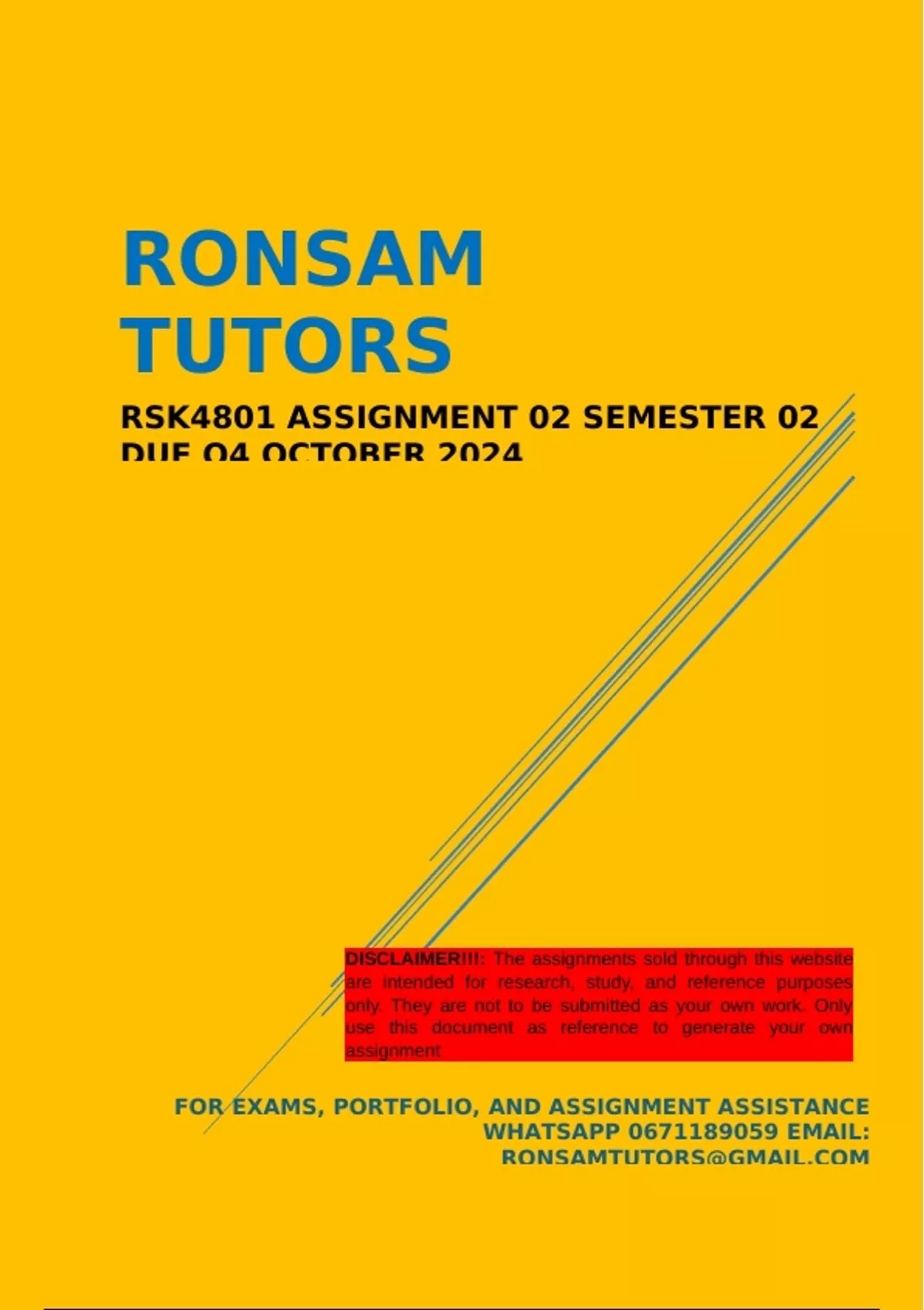 RSK4801 ASSIGNMENT 02 SEMESTER 02