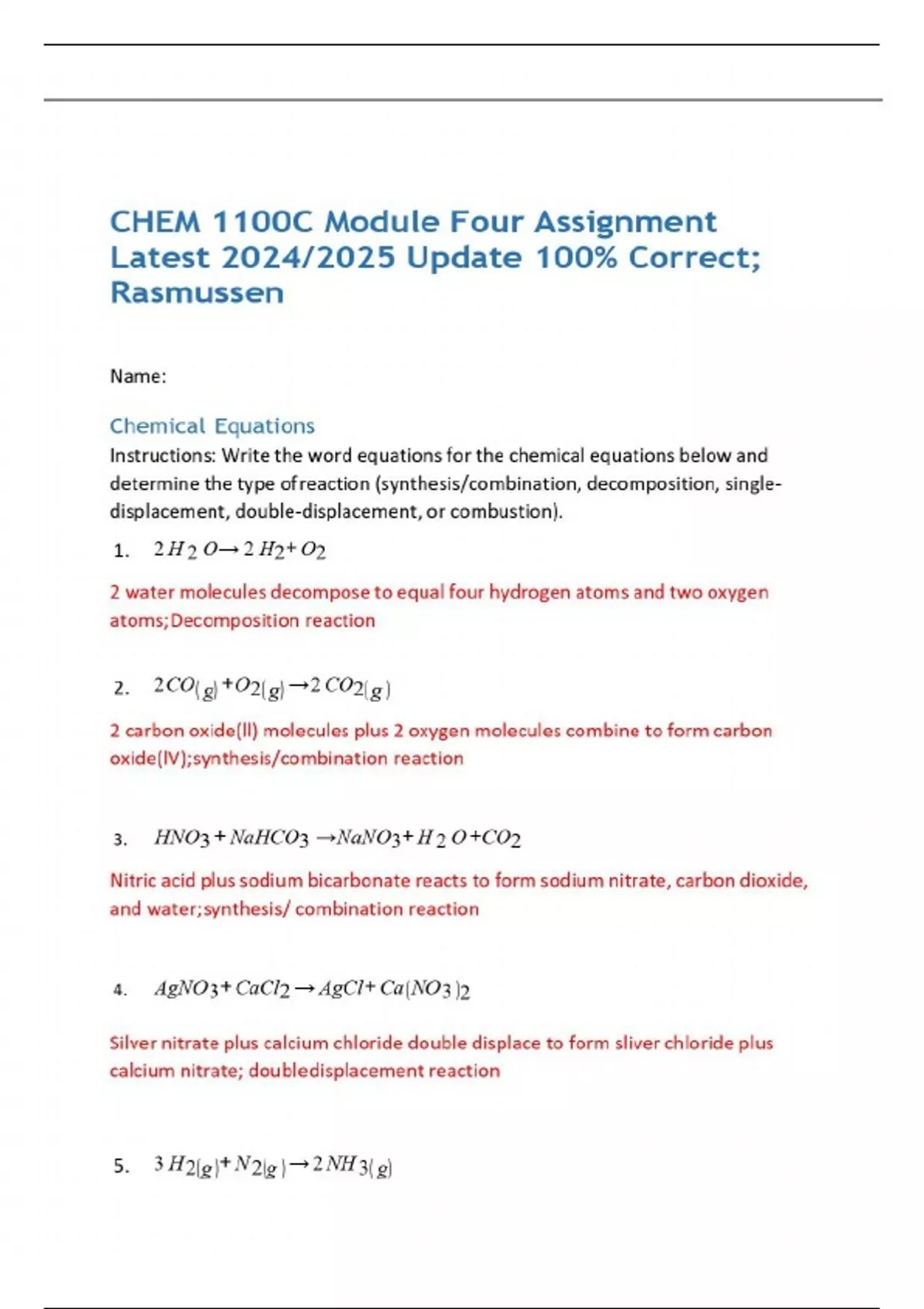 CHEM 1100C Module Four Assignment Latest 2024/2025 Update 100% Correct; Rasmussen