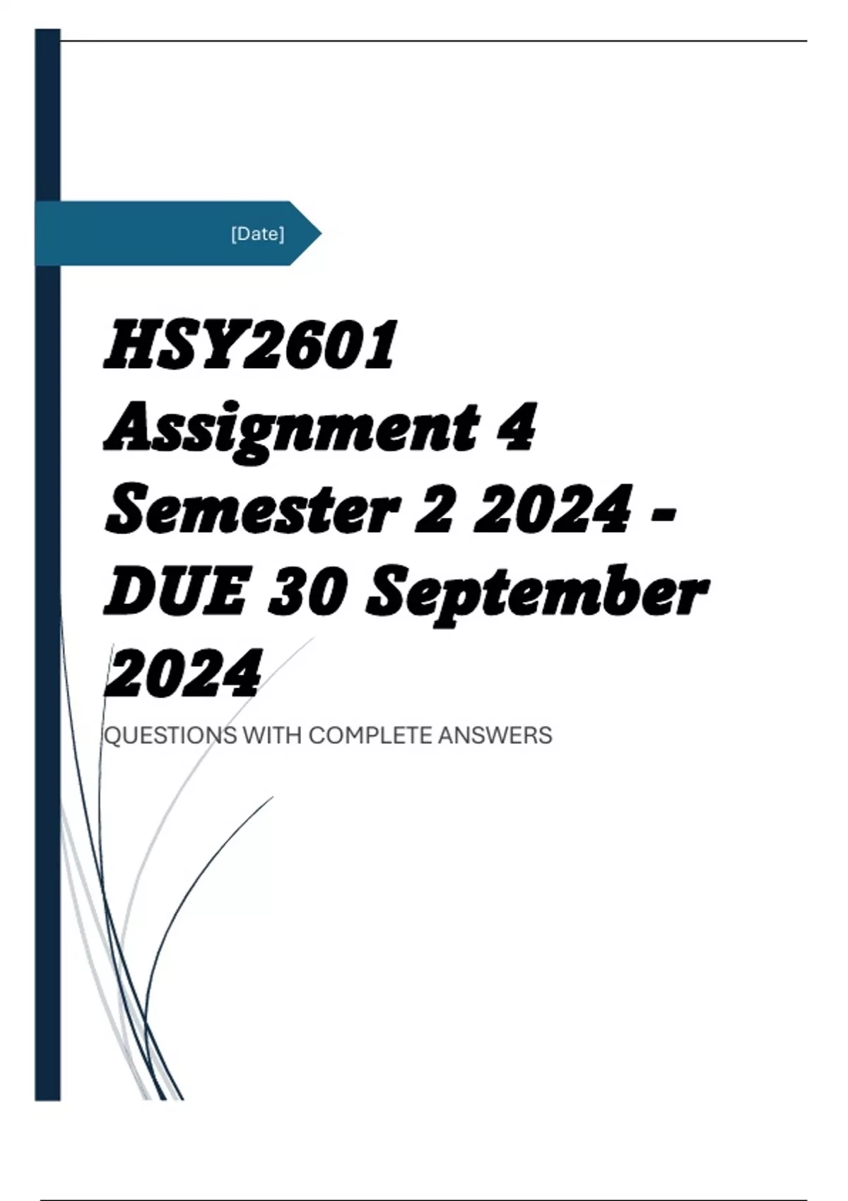HSY2601 Assignment 4 Semester 2 2024 - DUE 30 September 2024 QUESTIONS WITH ANSWERS