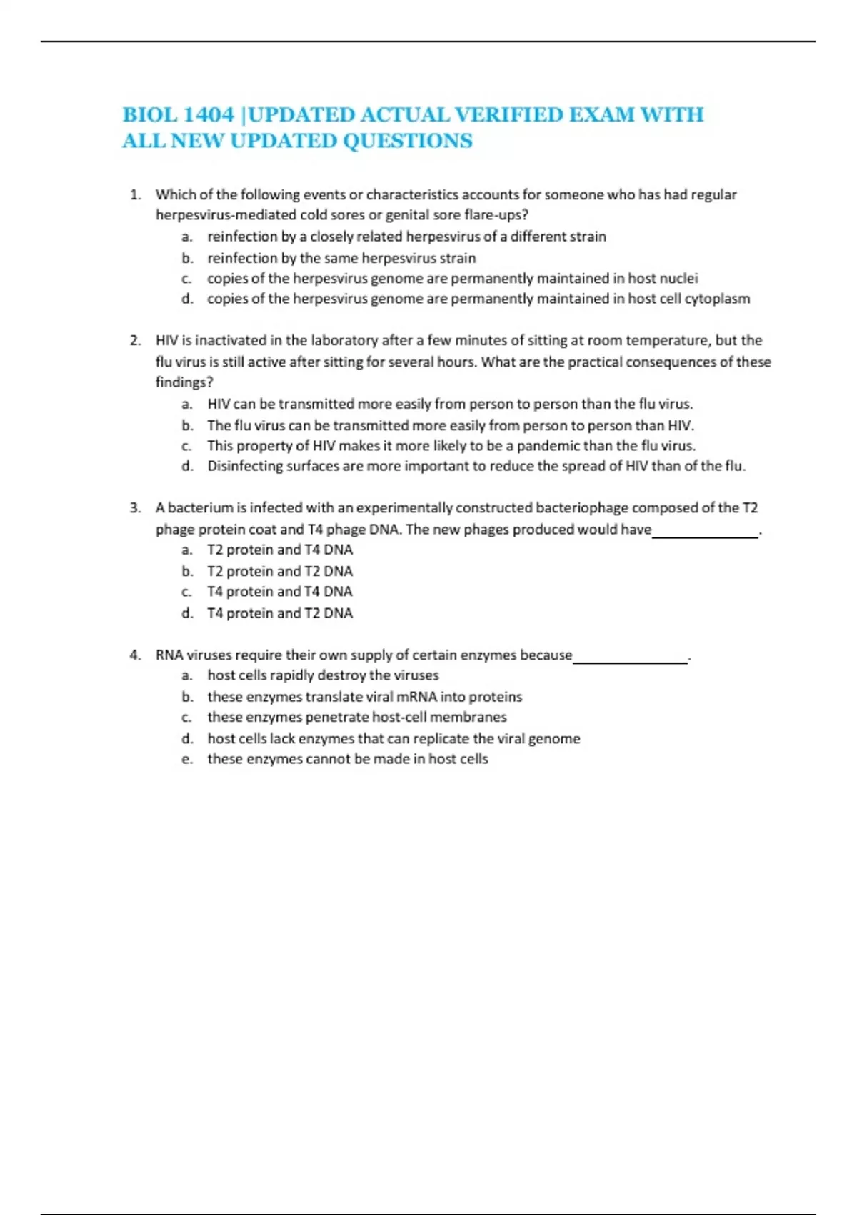 BIOL 1404 |UPDATED ACTUAL VERIFIED EXAM WITH ALL NEW UPDATED QUESTIONS