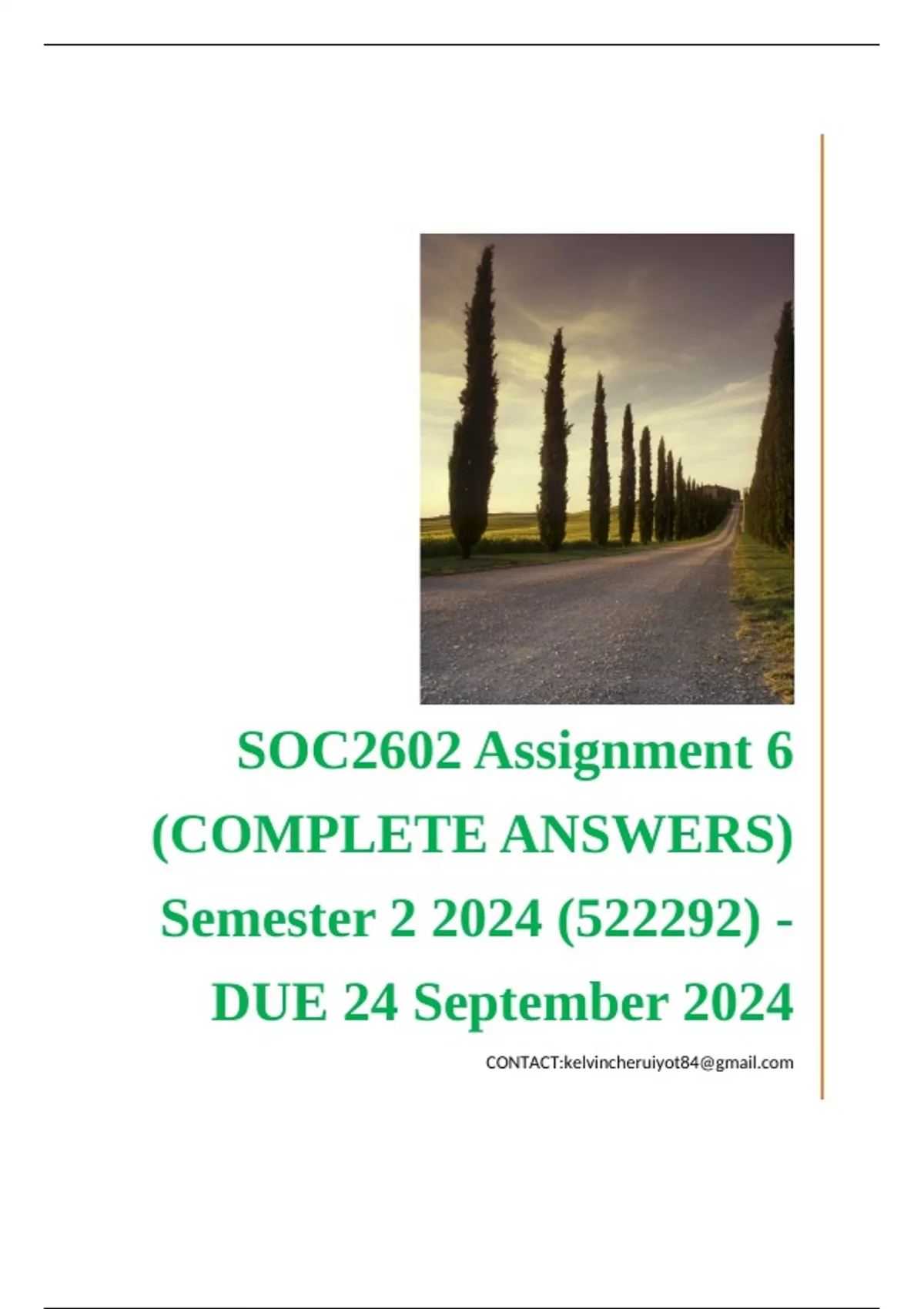 SOC2602 Assignment 6 (COMPLETE ANSWERS) Semester 2 2024 (522292) - DUE 24 September 2024