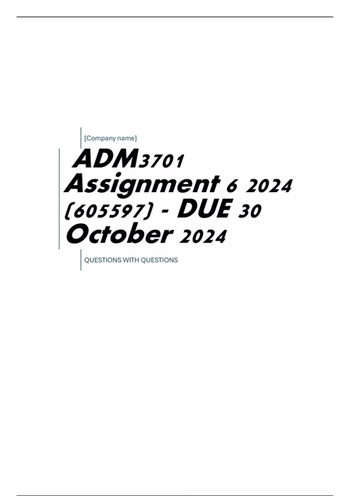 ,ADM3701 Assignment 6 2024 (605597) - DUE 30 October 2024