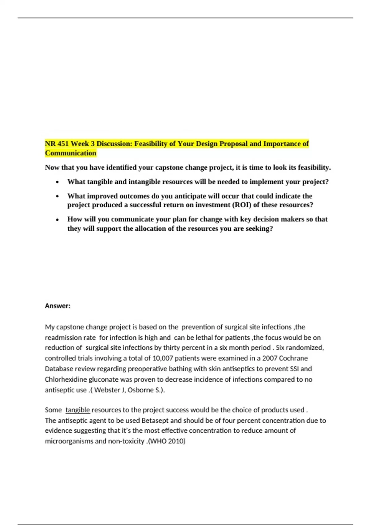 NR 451 Week 3 Discussion, Feasibility of Your Design Proposal and Importance of Communication/NR 451 Week 3 Discussion, Feasibility of Your Design Proposal and Importance of Communication