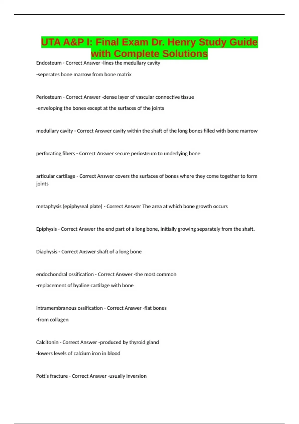 Endosteum - Correct Answer -lines the medullary cavity