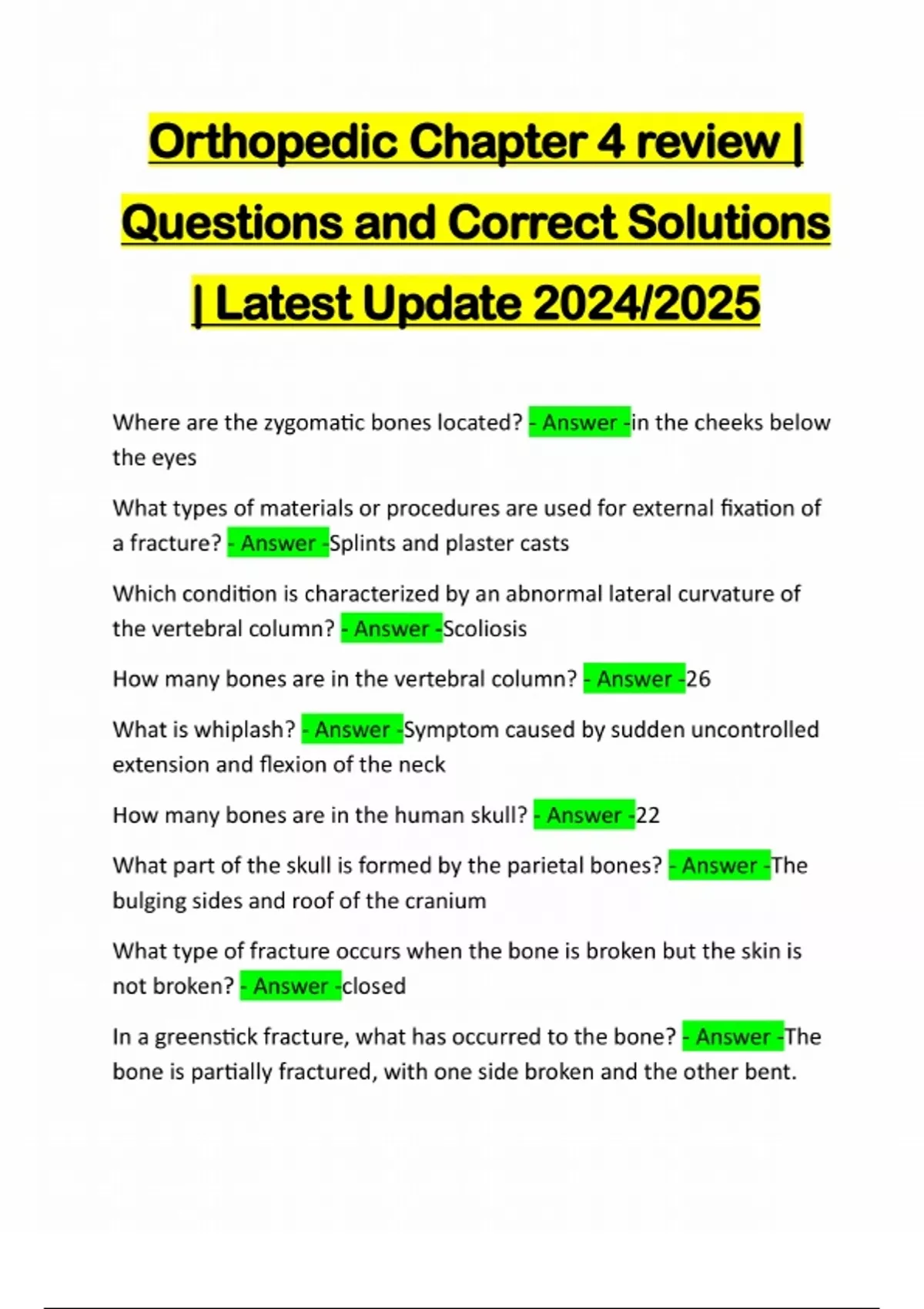 Orthopedic Chapter 4 review | Questions and Correct Solutions | Latest Update 2024/2025