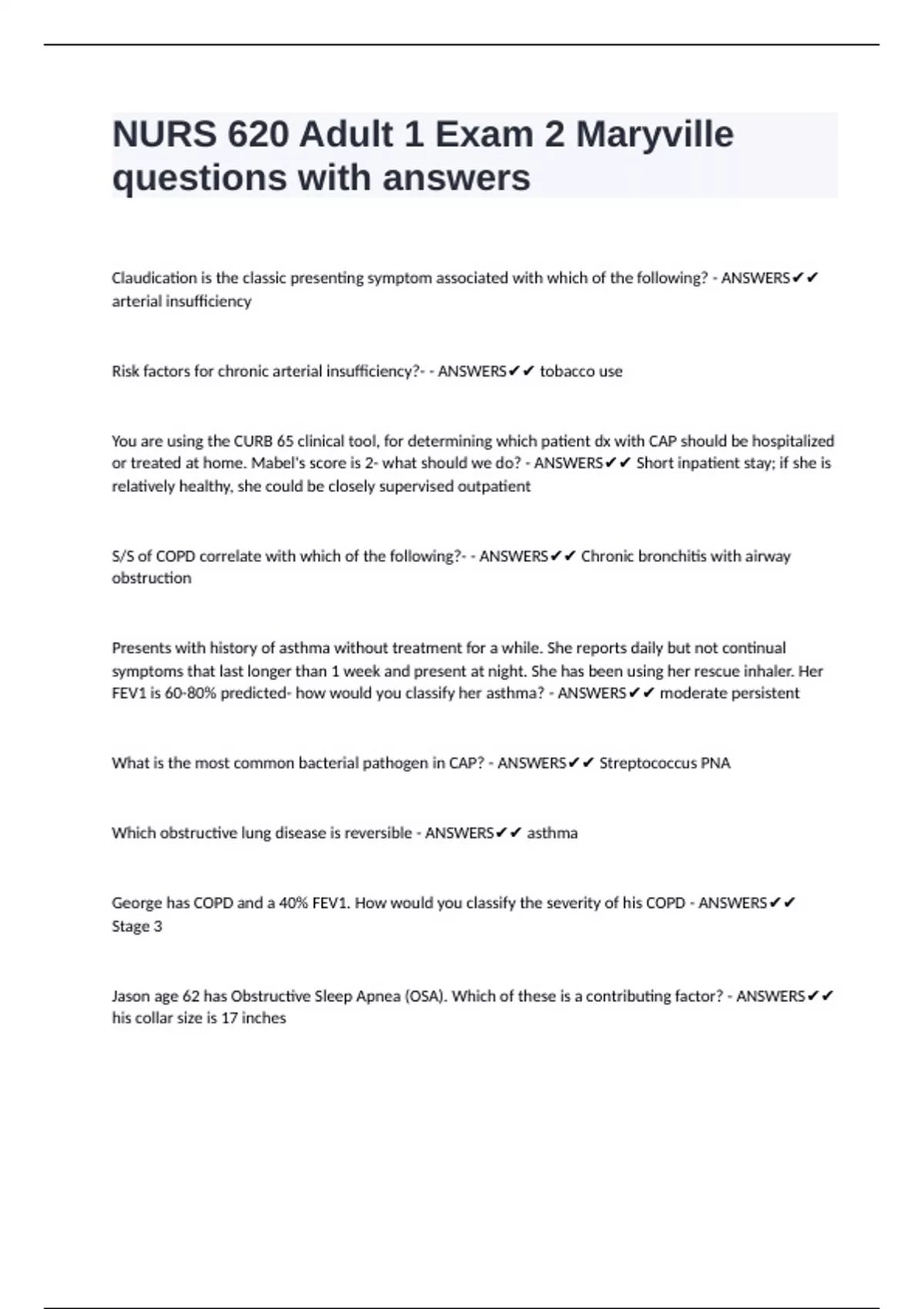 Claudication is the classic presenting symptom associated with which of the following? - ANSWERS✔✔