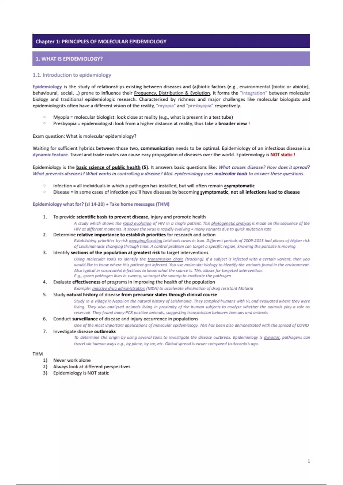 This document is a comprehensive summary of the course "Molecular Epidemiology of Infectious Diseases" by Prof. Jean-Claude Dujardin (). It includes detailed notes, PowerPoint slides, and corrected exercises from the lectures. Additionally, it contains a selection of exam questions, offering a thorough review of the course content. The grade obtained 17/20.