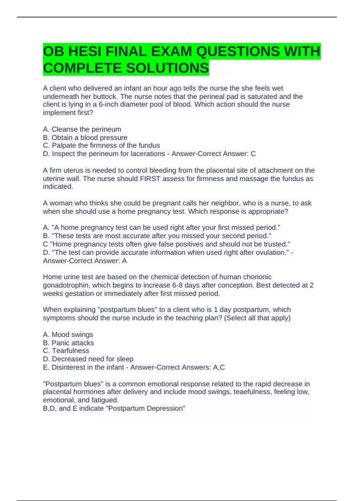 D. Inspect the perineum for lacerations - Answer-Correct Answer: C