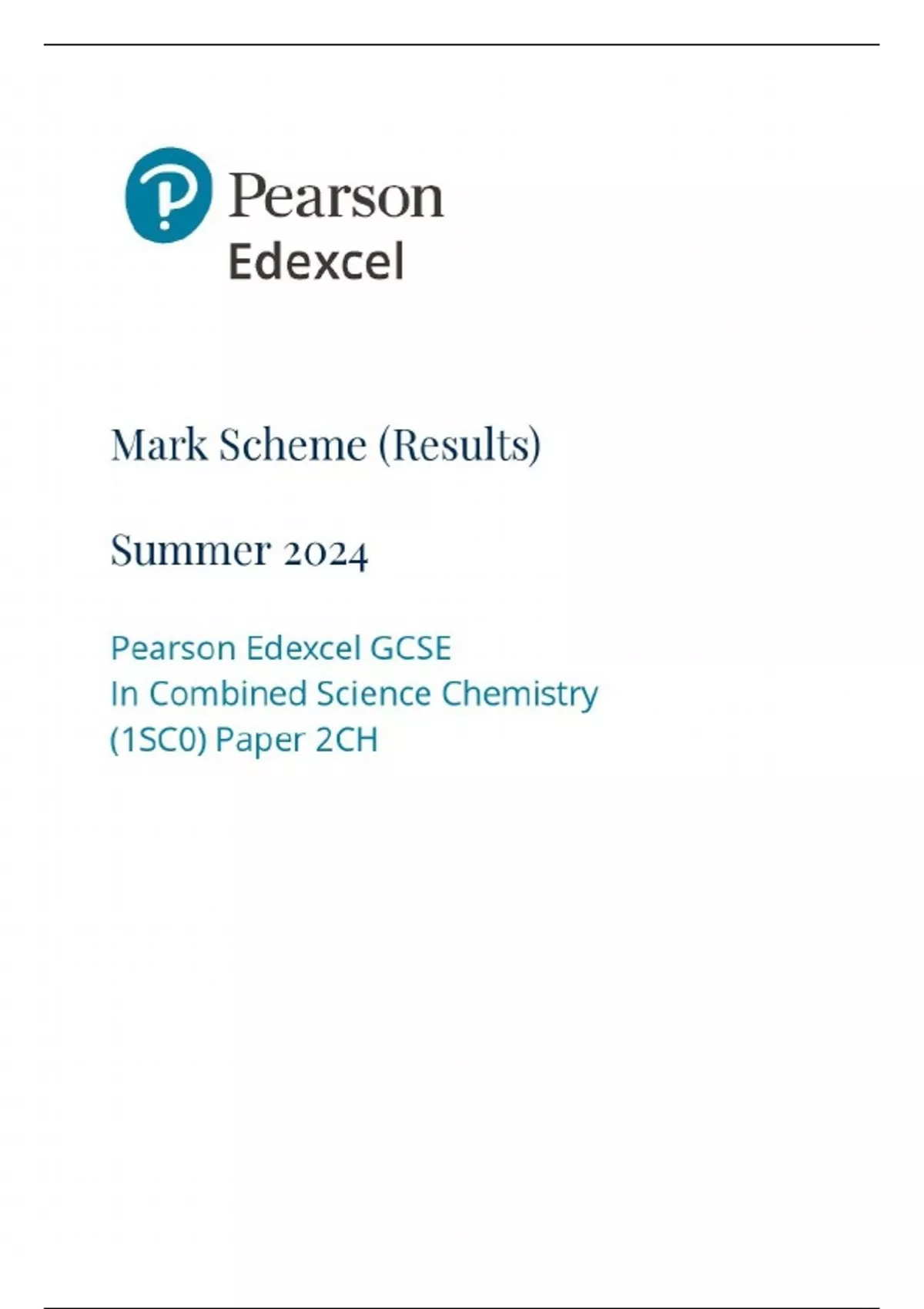 GCSE EDEXCEL 2024 Higher Combined Science Chemistry Paper 2 (Paper 5) Mark Scheme