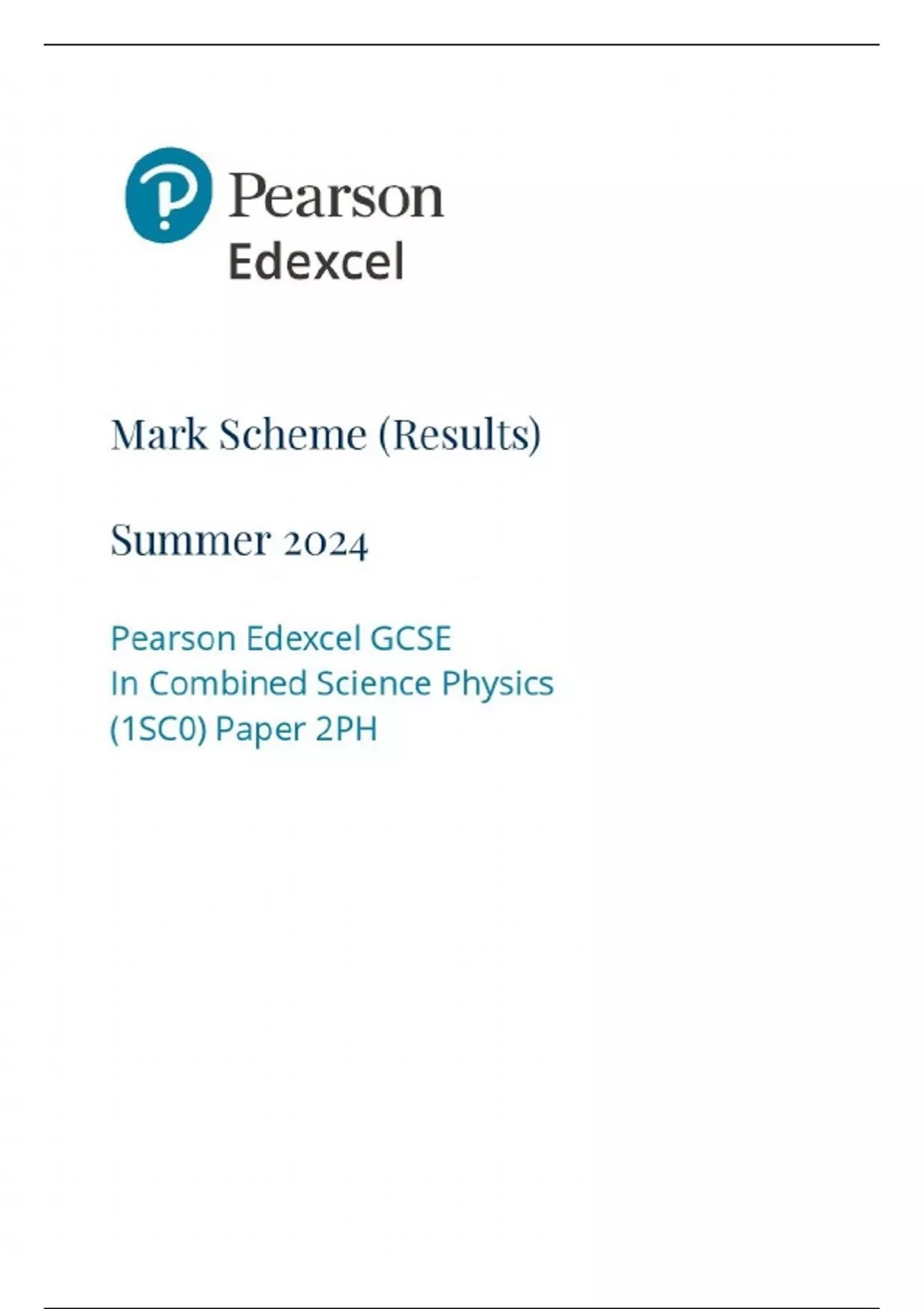 GCSE EDEXCEL 2024 Higher Combined Science Physics Paper 2 (Paper 6) Mark Scheme