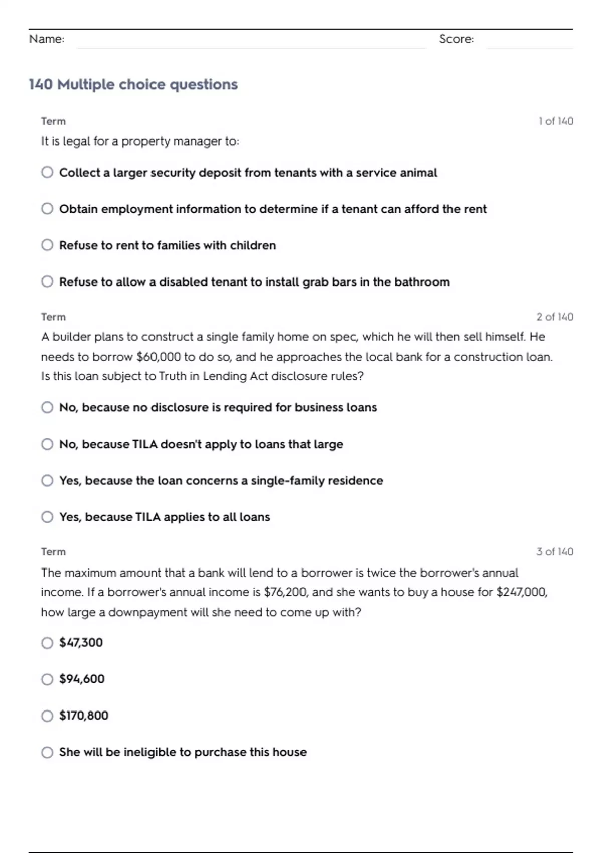 A developer wants a construction loan to build 20 homes. The lender requires a take-out