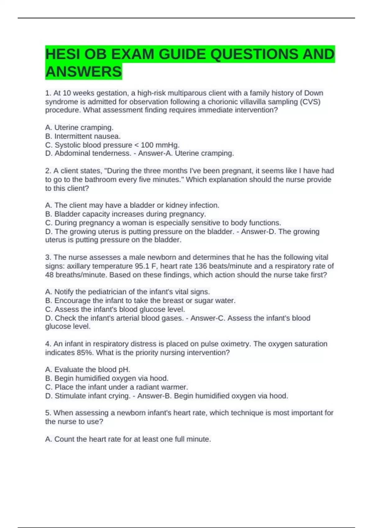 3. The nurse assesses a male newborn and determines that he has the following vital