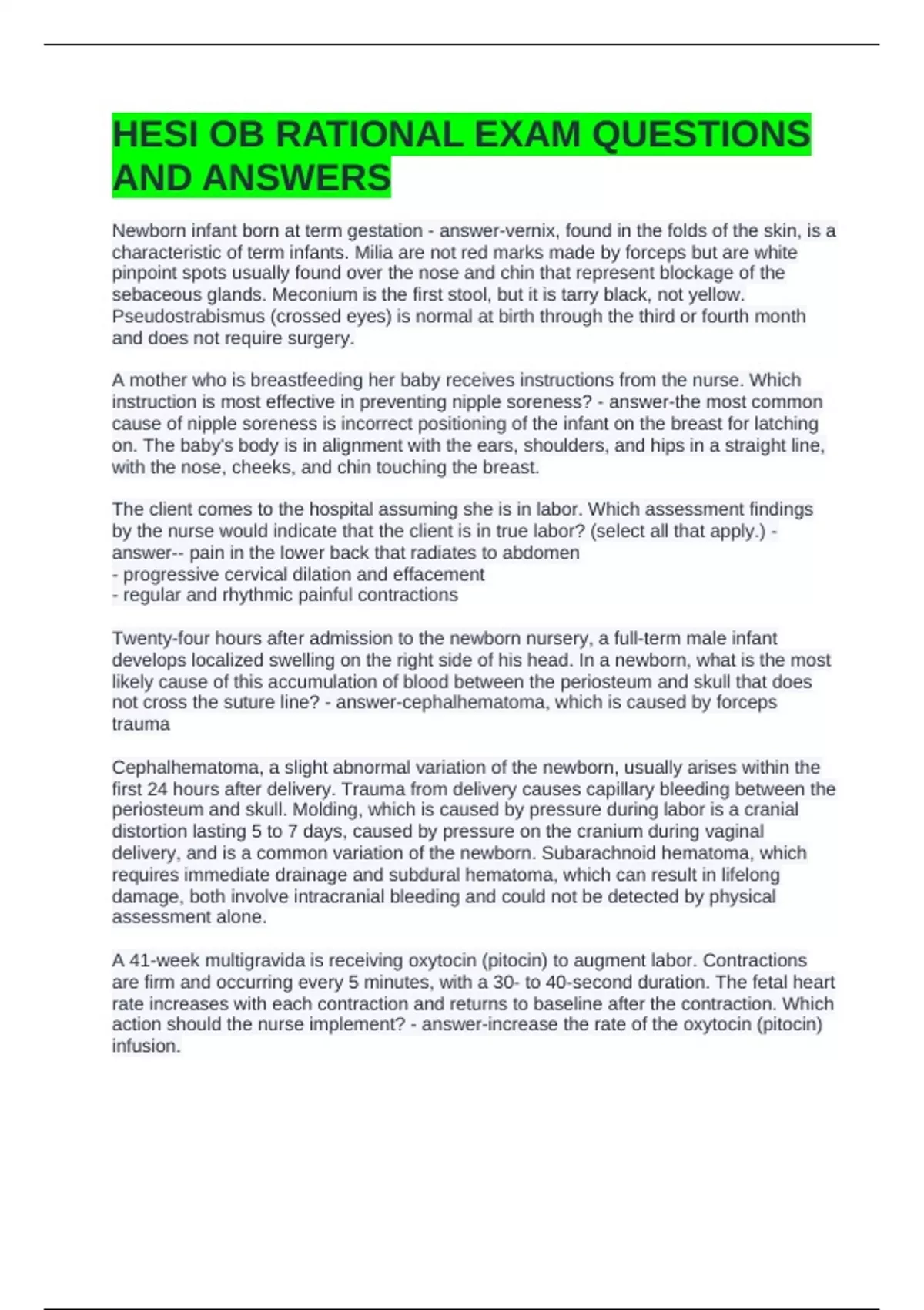 action should the nurse implement? - answer-increase the rate of the oxytocin (pitocin)