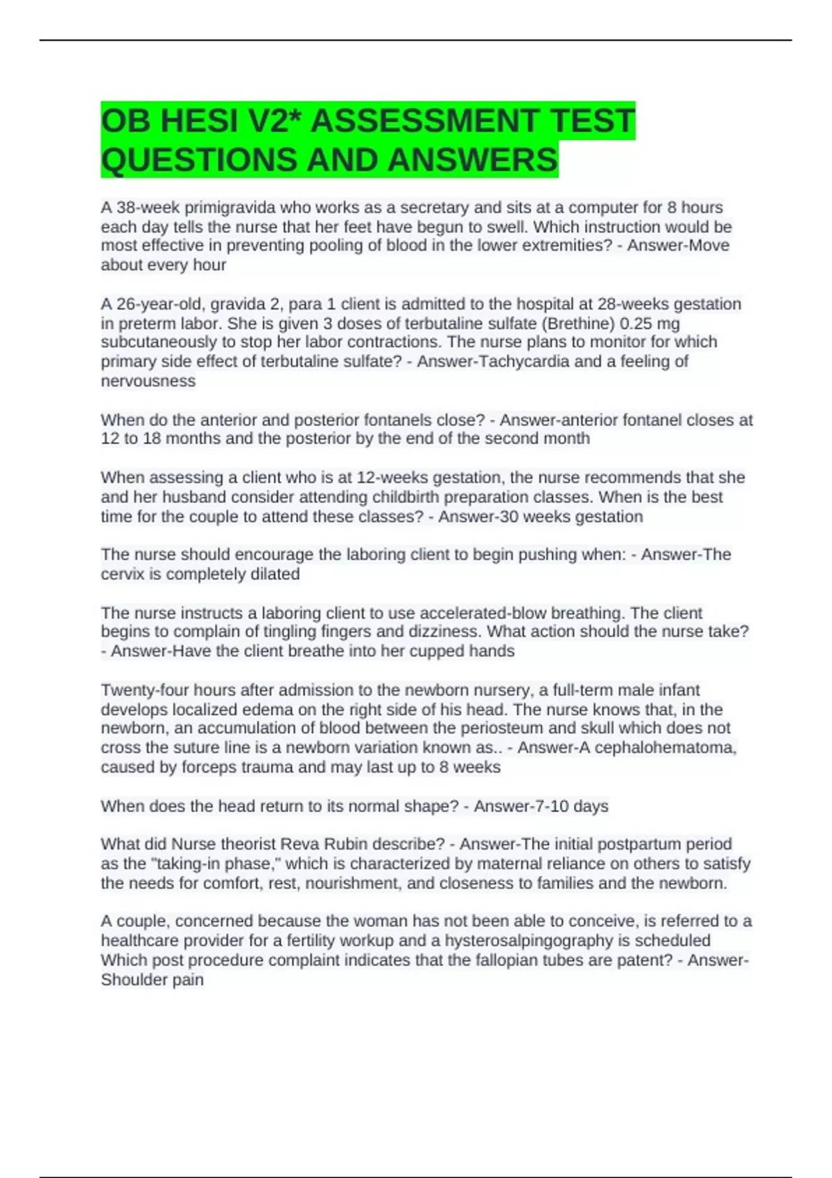 OB HESI V2* ASSESSMENT TEST