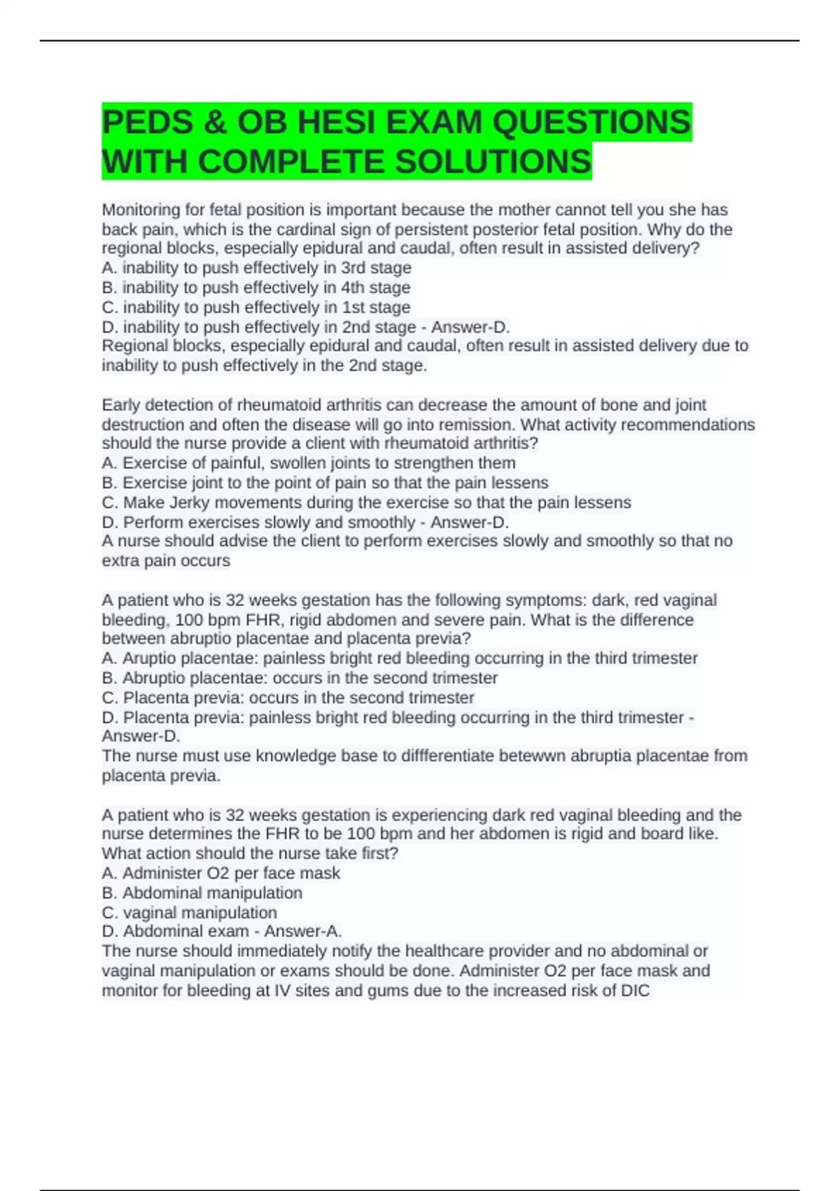 D. Monitor for bleeding at IV sites and gums due to increased risk of DIC - Answer-D.